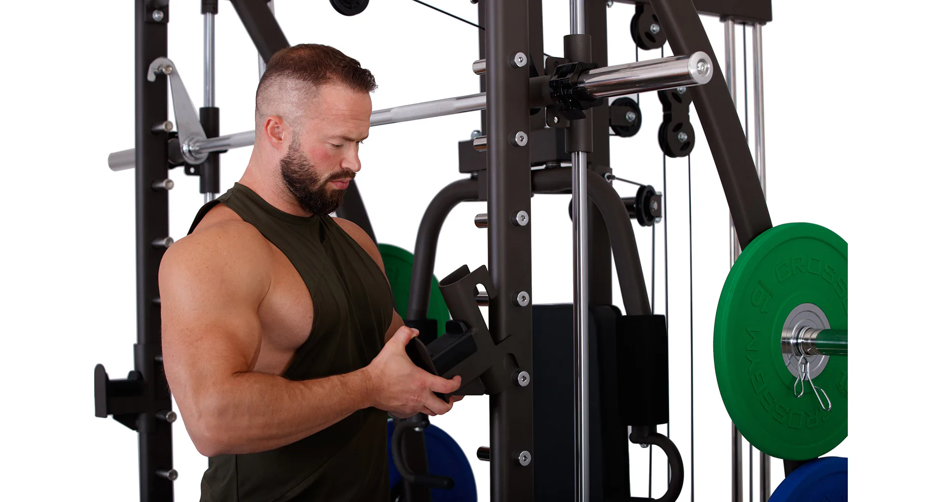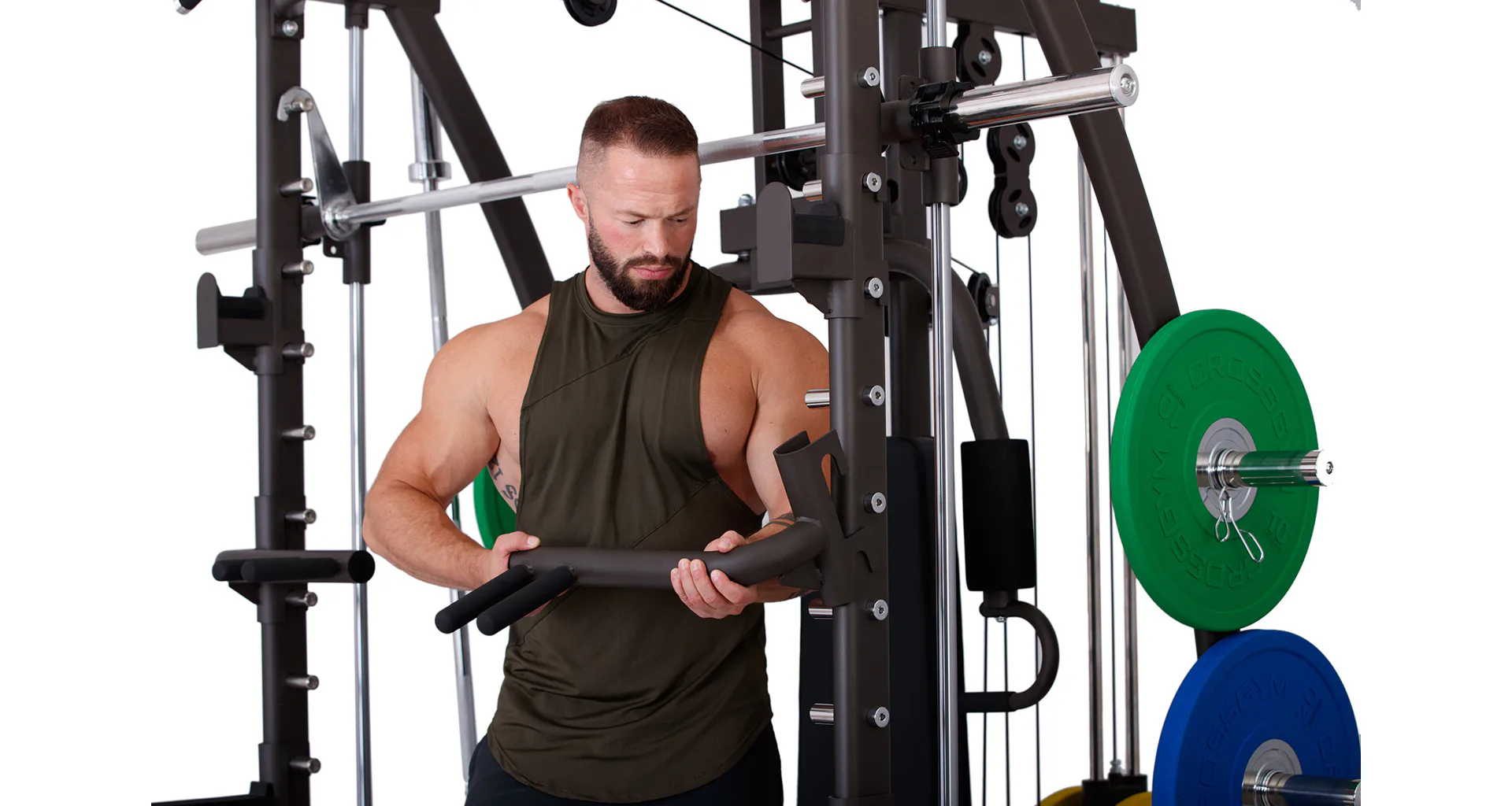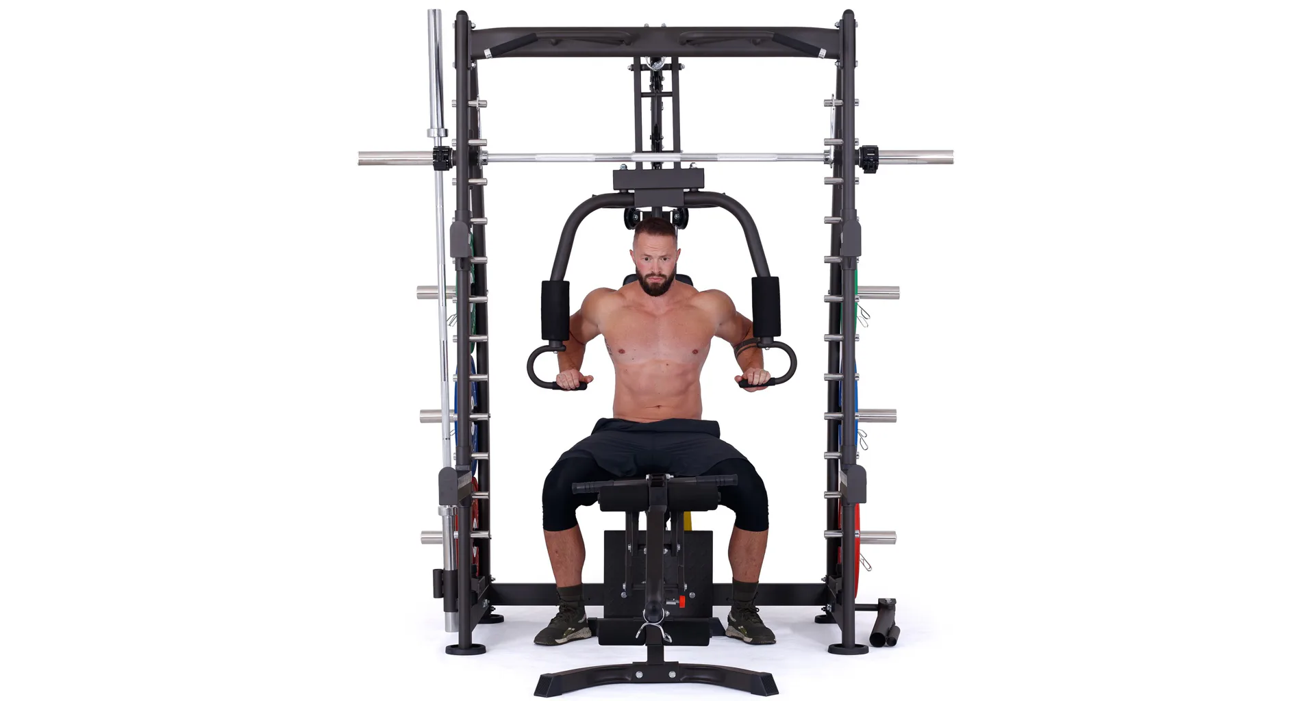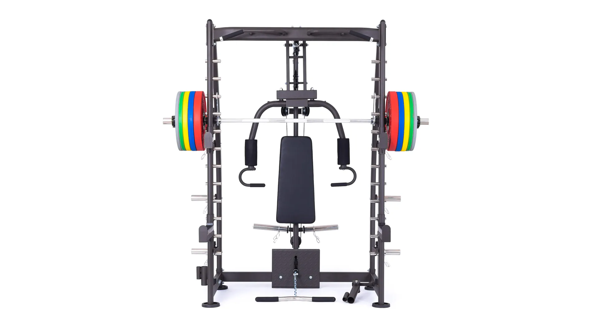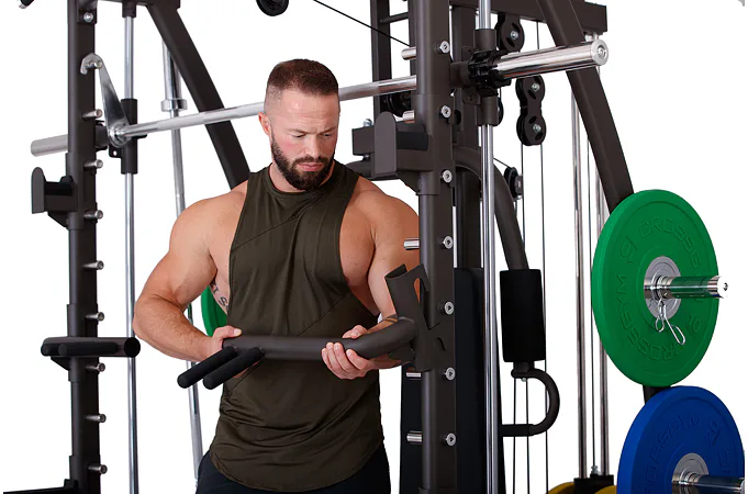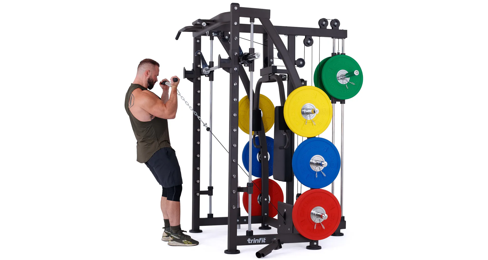 Multipress TRINFIT Multi Smith CX40 využívá jako závaží kotouče, je tedy pouze na vás, jakou zátěž si zvolíte. Je možné použít kotouče s průměrem 25 mm a díky redukcím také olympijské kotouče s průměrem 50 mm. Zároveň nabízí nepřeberné množství druhů cvičení formou tricepsových kliků, tlaků na prsa, ramena, kladek, peck deck atd..