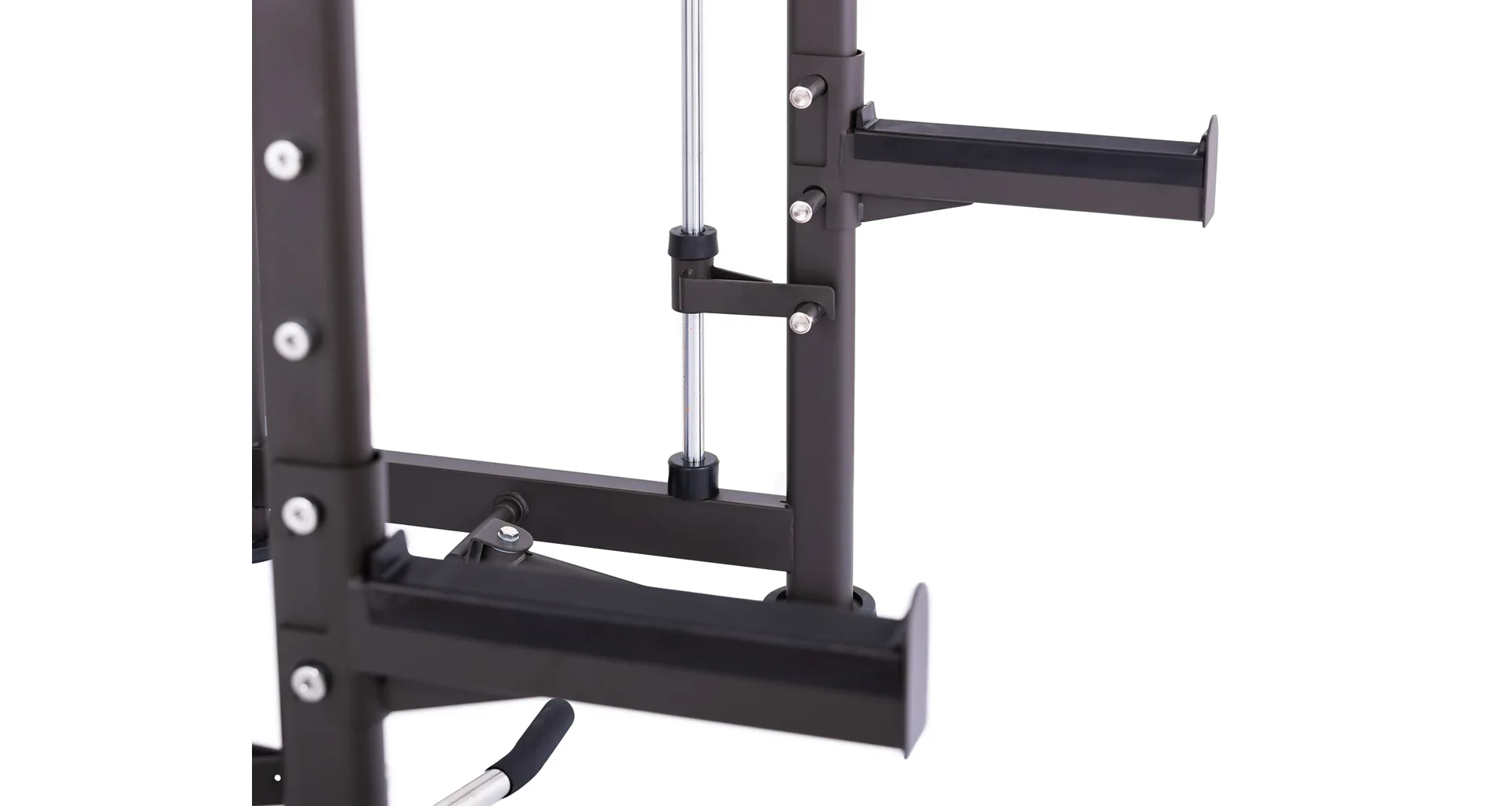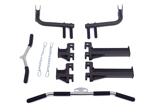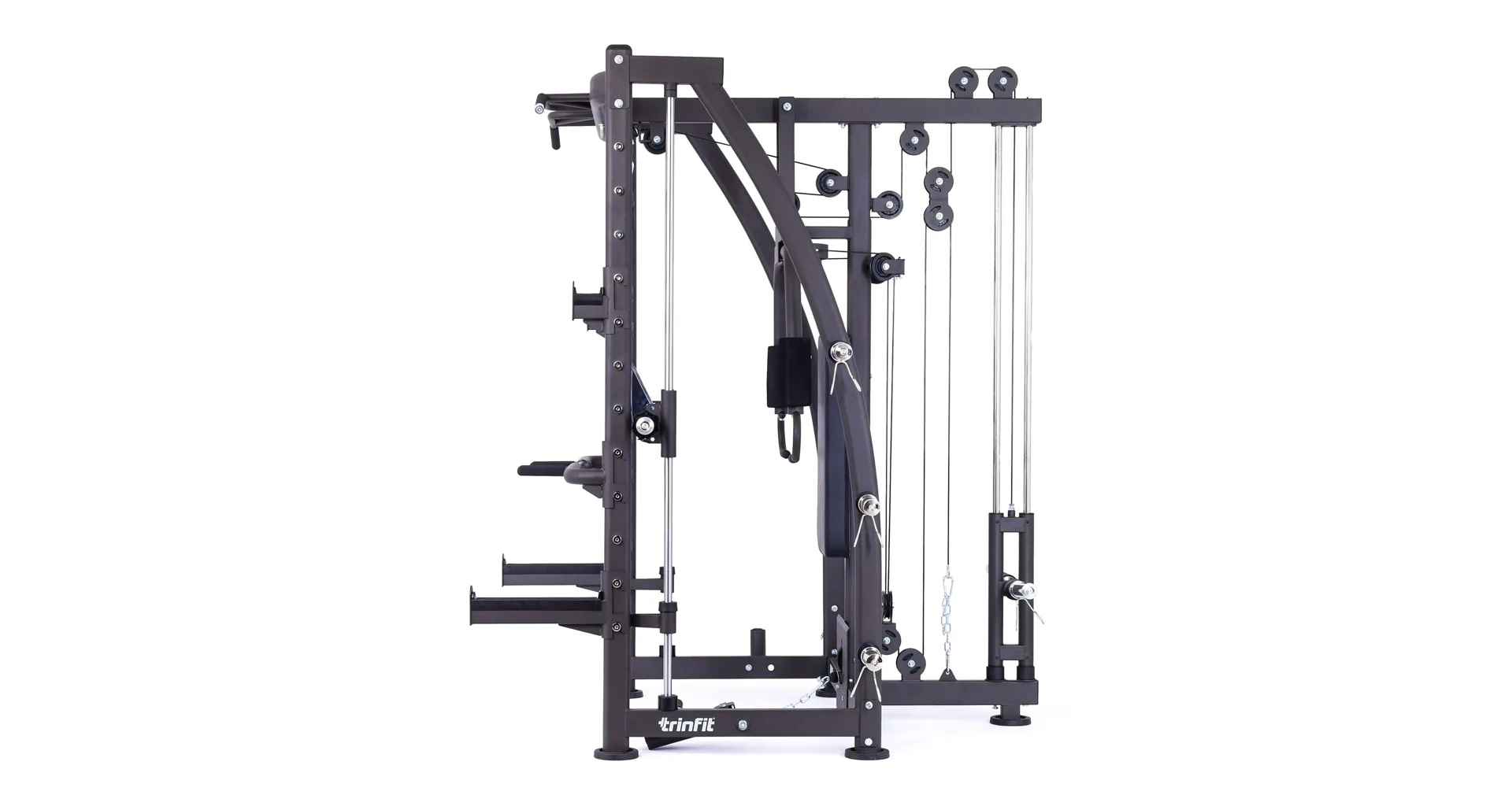 Součástí posilovací klece TRINFIT Multi Smith CX40 je horní a spodní kladka, peck deck včetně zádové opěrky, multiúchopová hrazda, adaptéry na dipy, výškově nastavitelné stojany na volnou osu a také bezpečnostní dorazy.