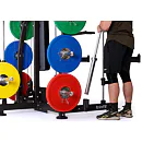 Vyobrazené kotouče a osa na volnou činku nejsou součástí dodávky, lze je dokoupit.