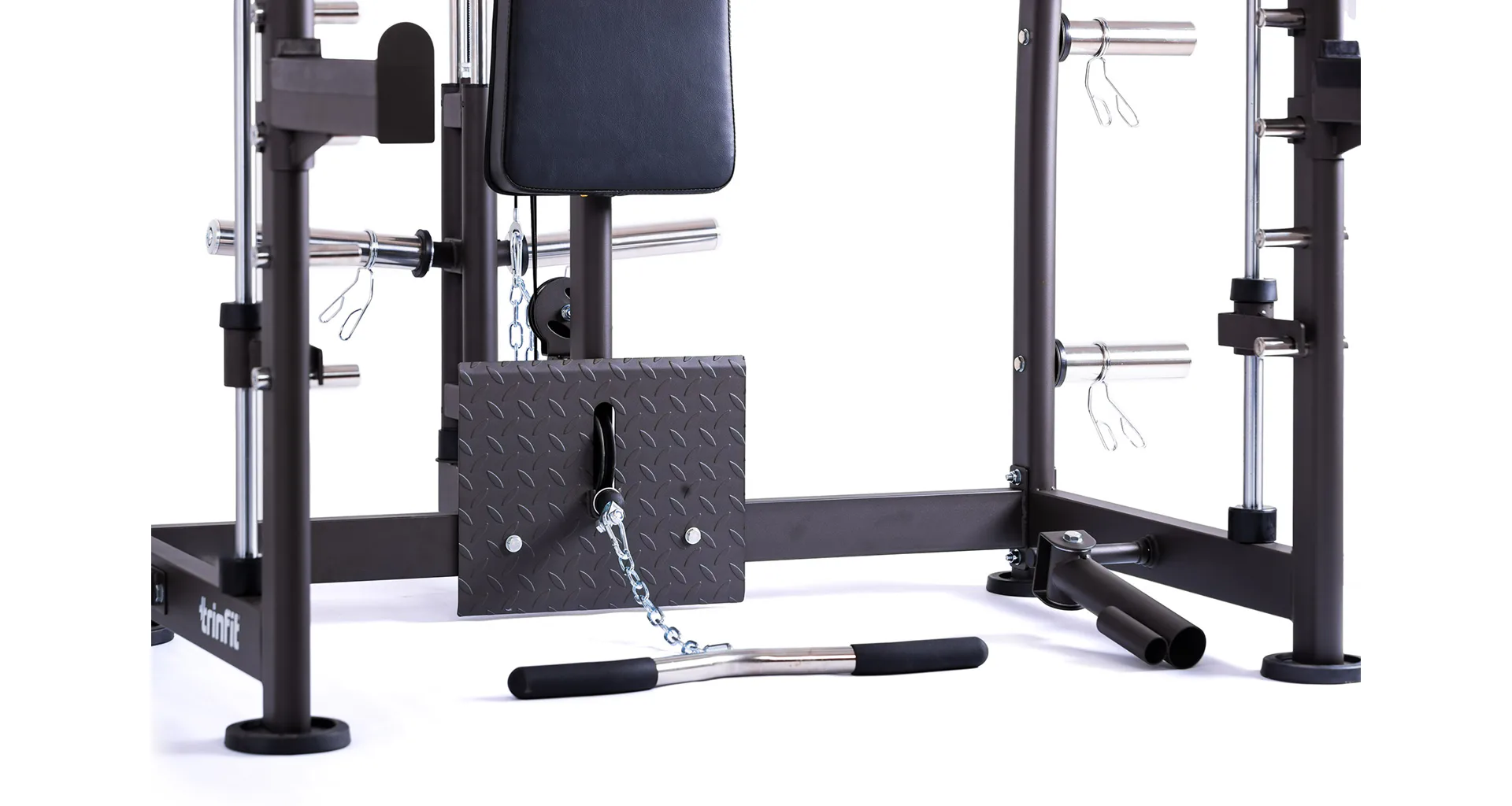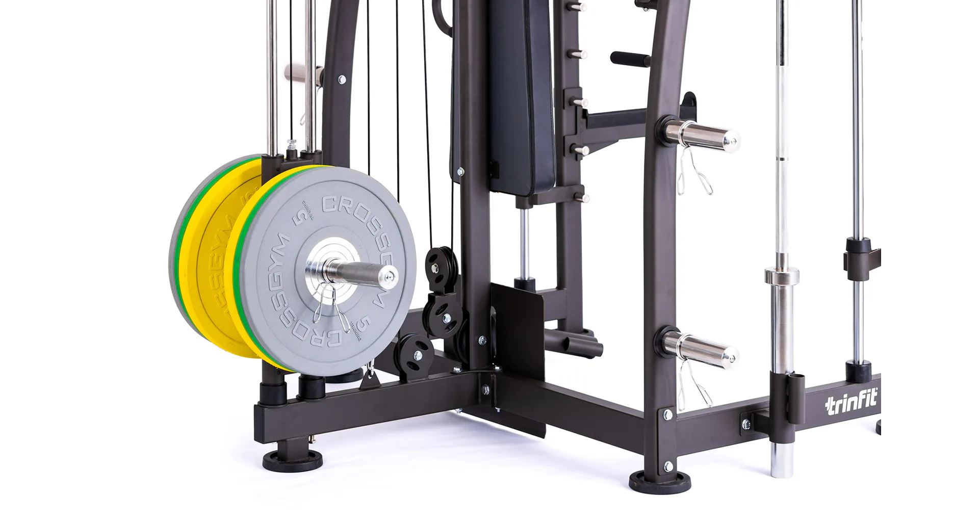 TRINFIT Multi Smith CX40 má robustní konstrukci, kde máte možnost určit si výšku vedené osy a adaptérů pro daný cvik ve 12 polohách podle vašich potřeb.
