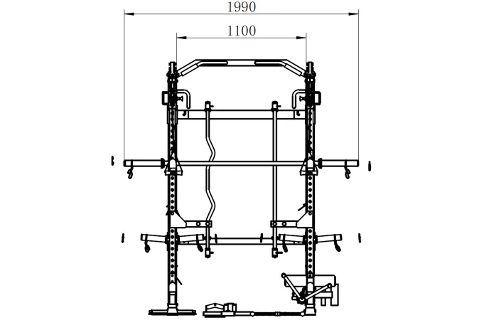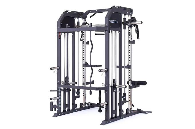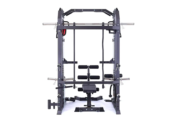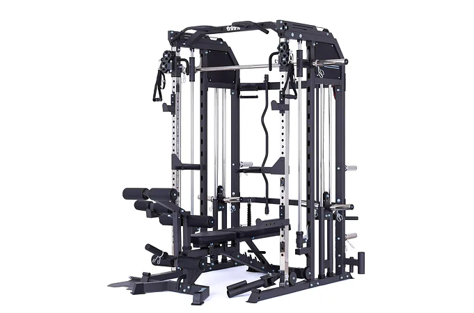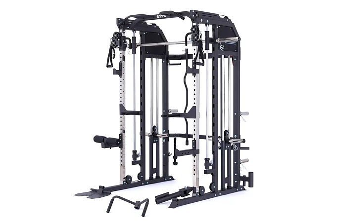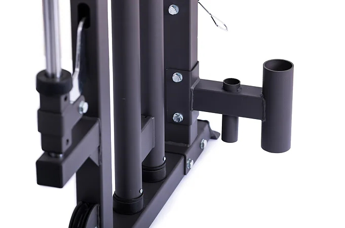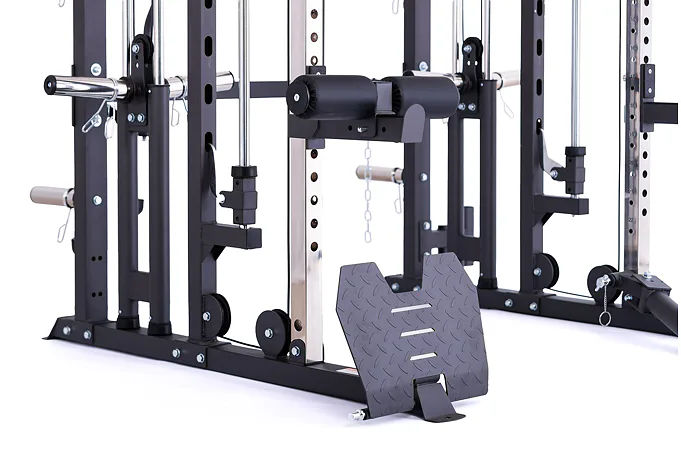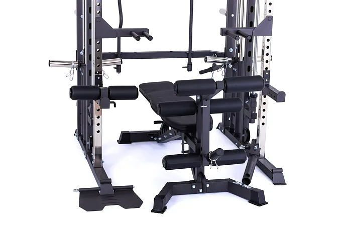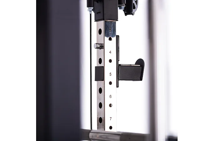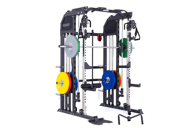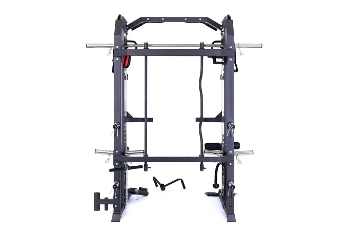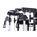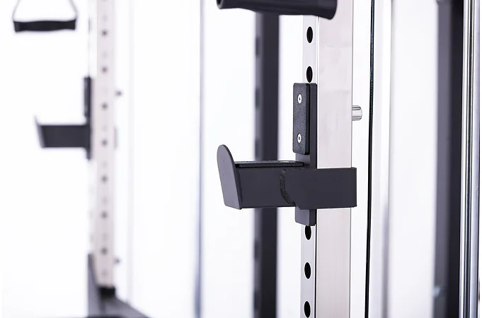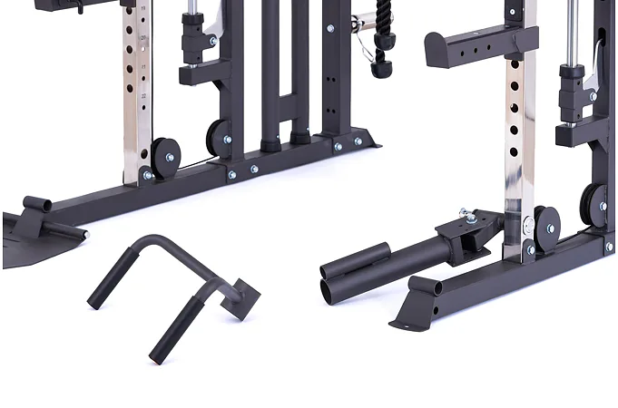 Model Multi Smith CX50 vyniká bezkonkurenční přirozenou ergonomií pohybu kladek, adaptérů a multipressu. Všechny kladky a multipress jsou osazeny kvalitními průmyslovými ložisky s mechanismem pro dopínání. Multipress jako závaží také využívá kotouče s průměrem 25 mm nebo 50 mm a pro odložení kotoučů jsou po stranách klece celkem 4 odkládací trny.