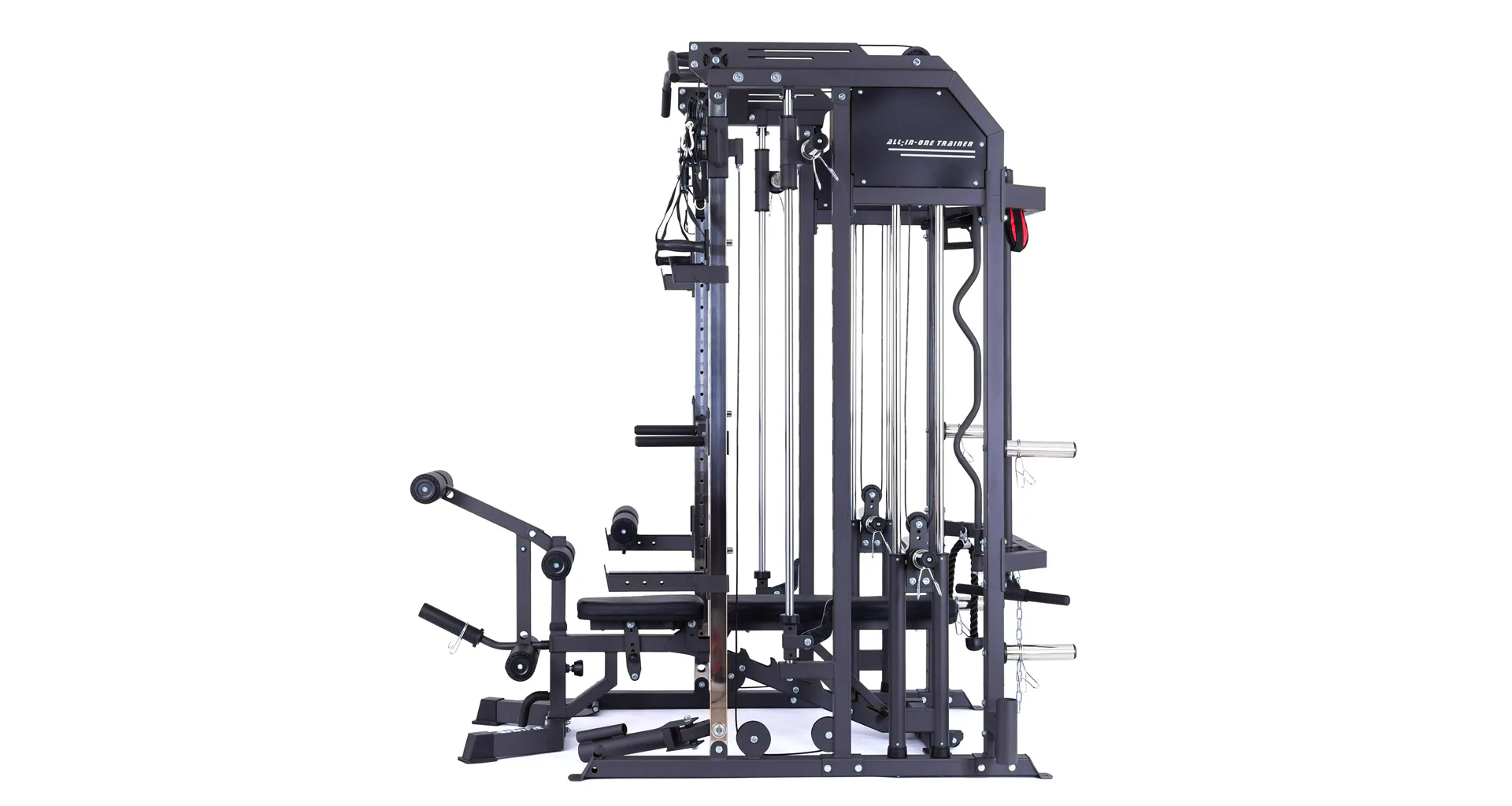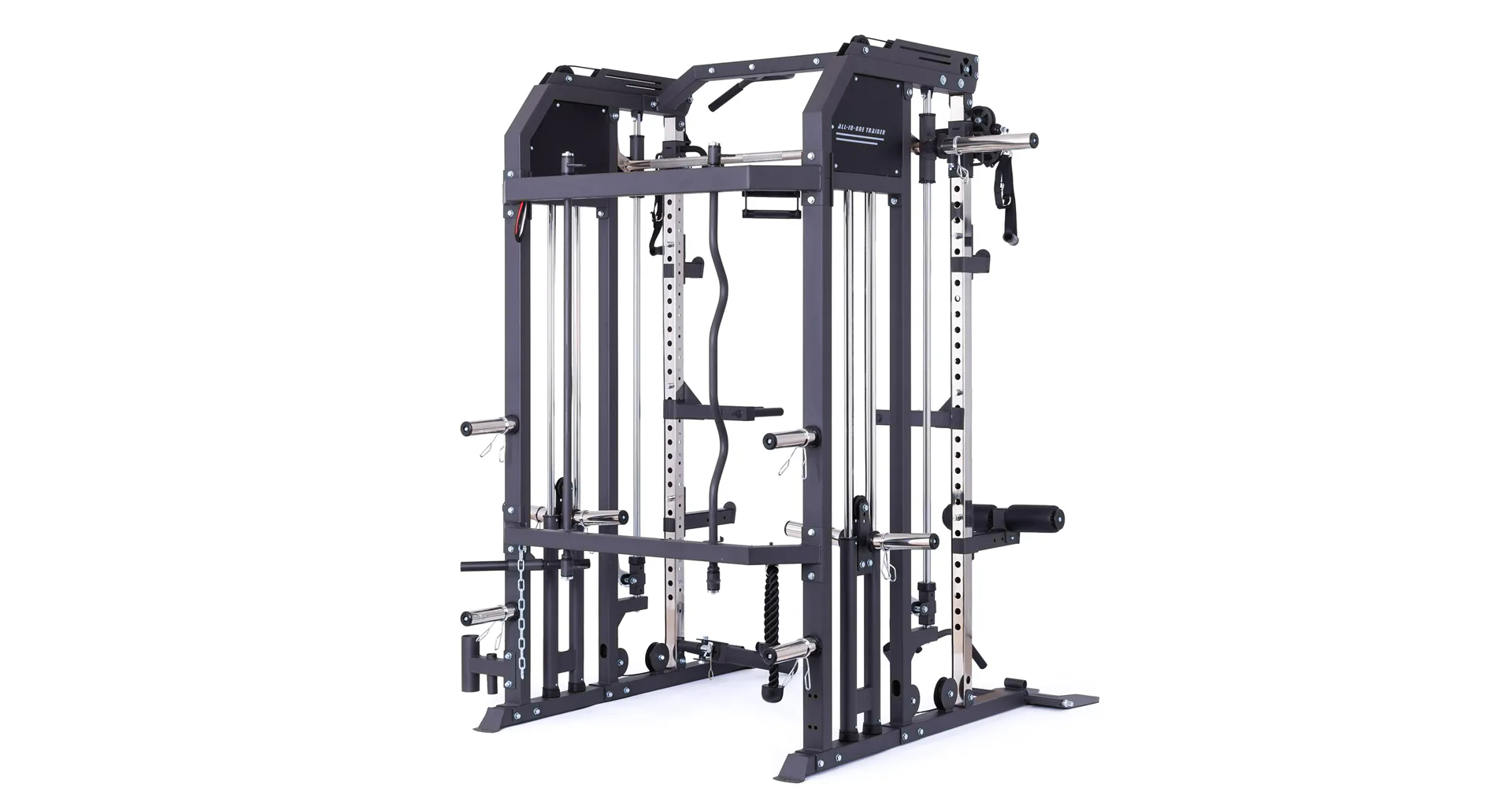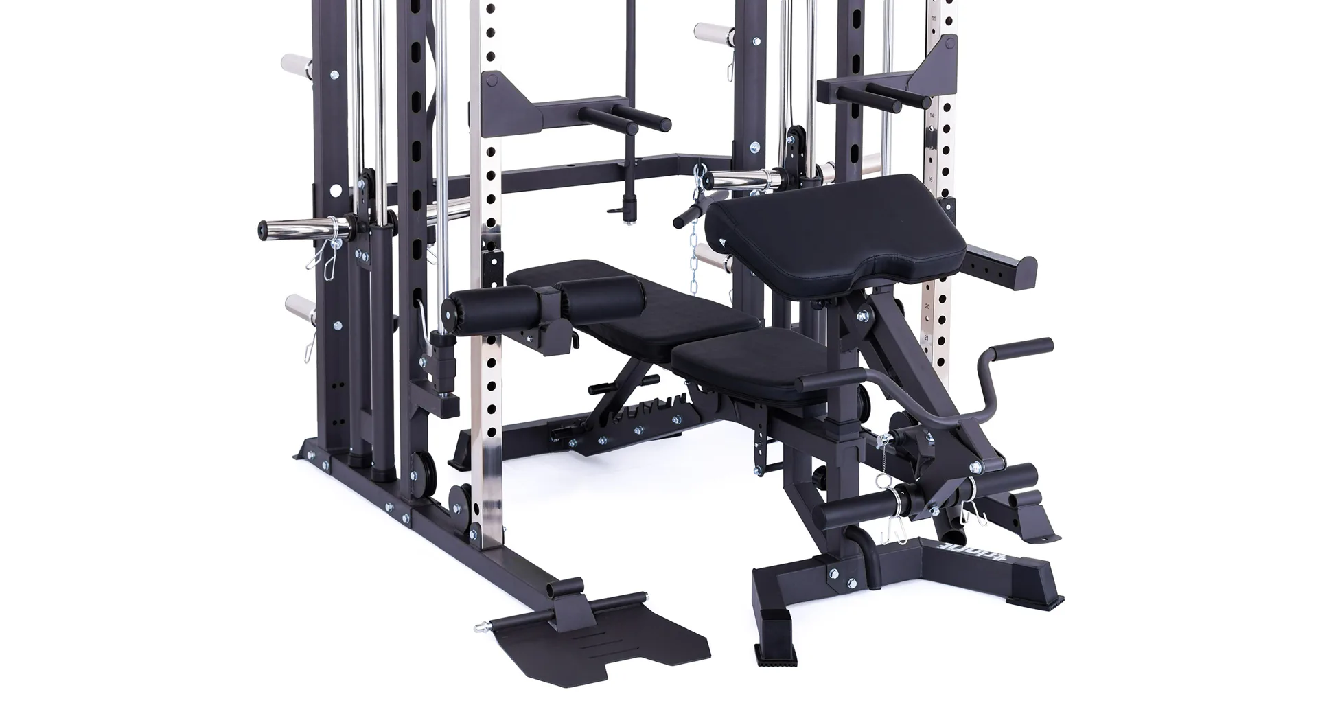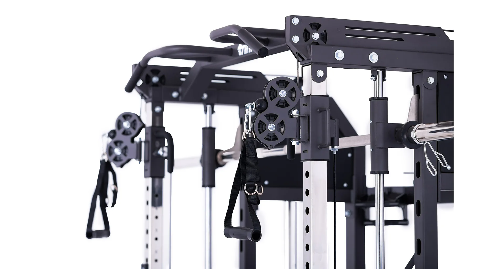 Model Multi Smith CX50 vyniká bezkonkurenční přirozenou ergonomií pohybu kladek, adaptérů a multipressu. Všechny kladky a multipress jsou osazeny kvalitními průmyslovými ložisky s mechanismem pro dopínání. Multipress jako závaží také využívá kotouče s průměrem 25 mm nebo 50 mm a pro odložení kotoučů jsou po stranách klece celkem 4 odkládací trny.