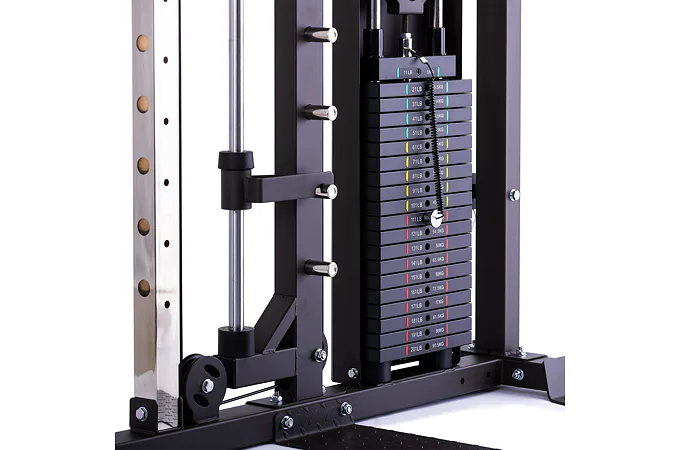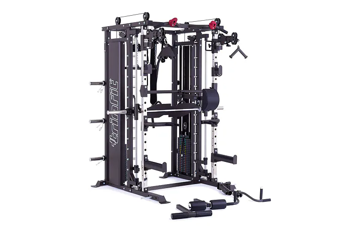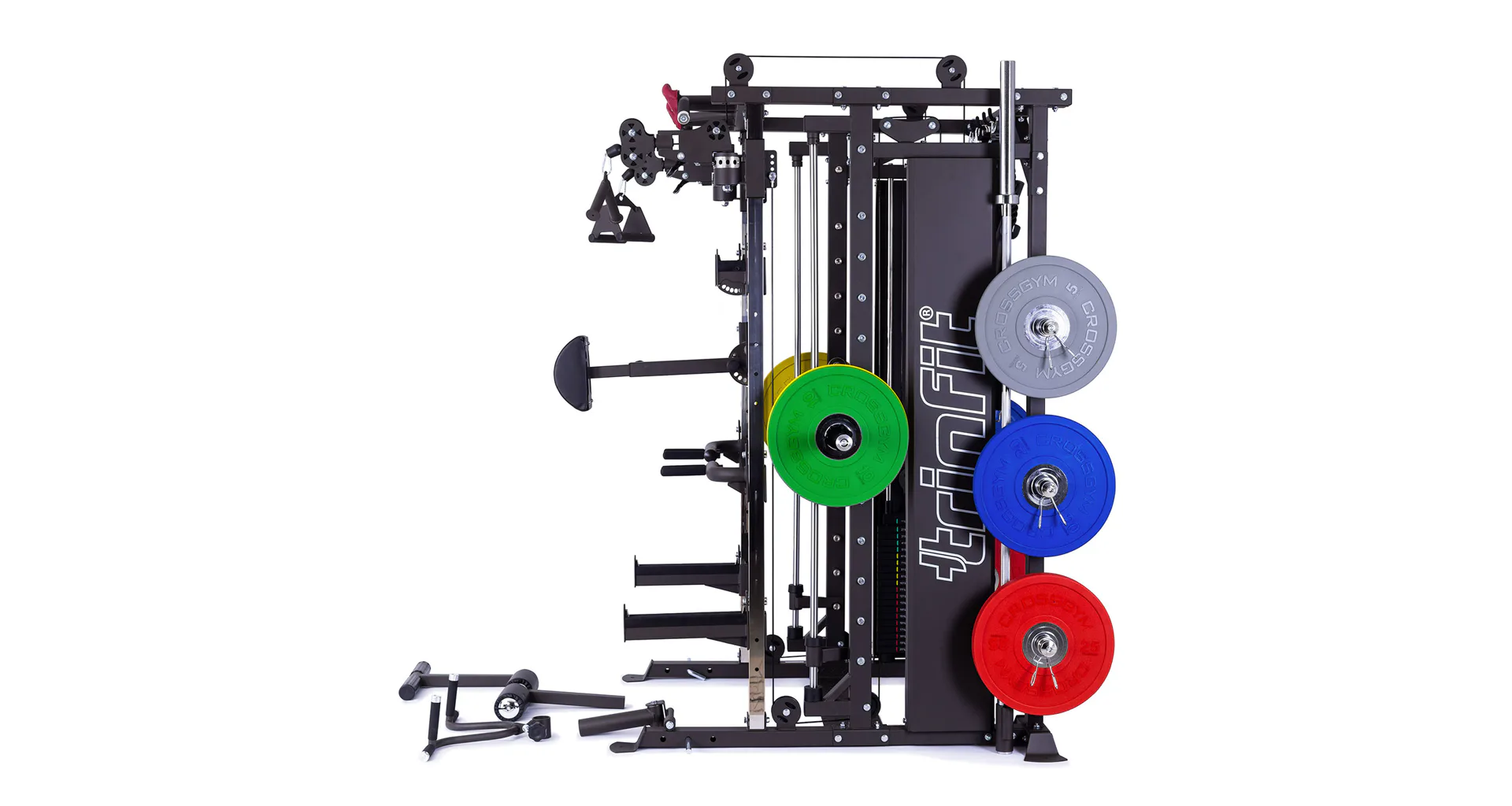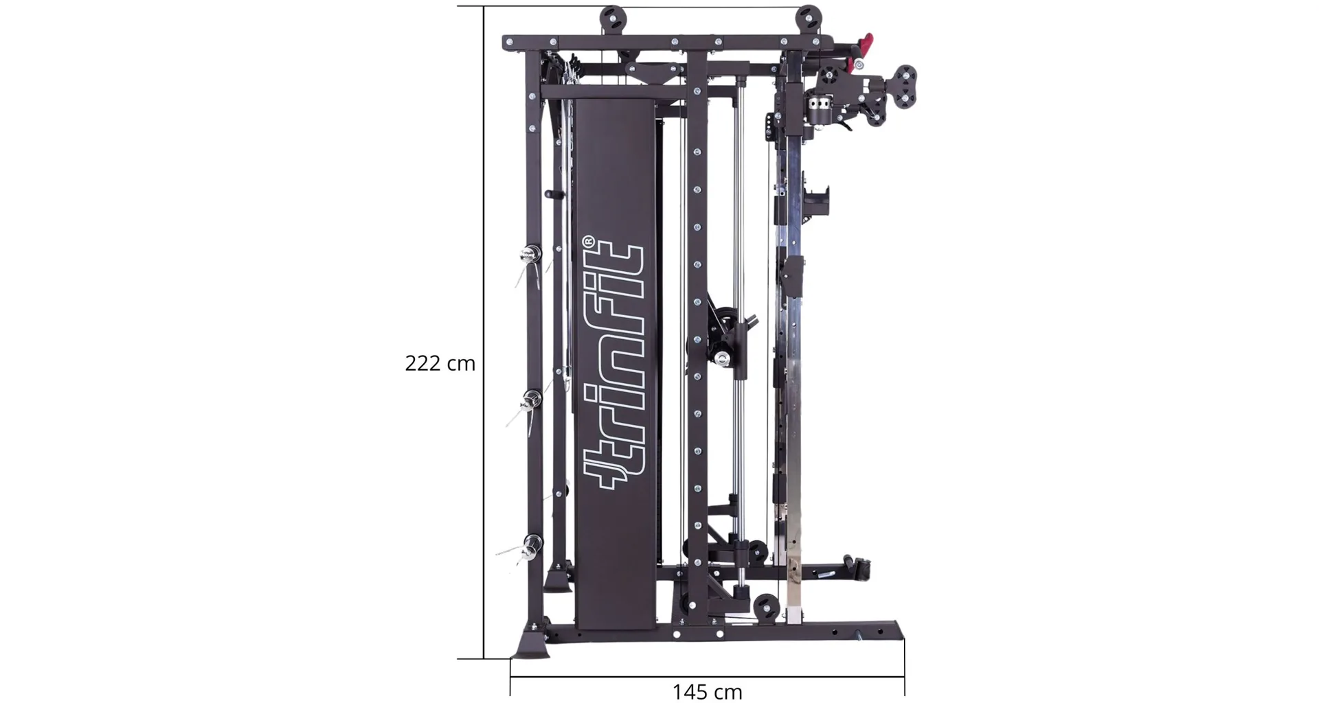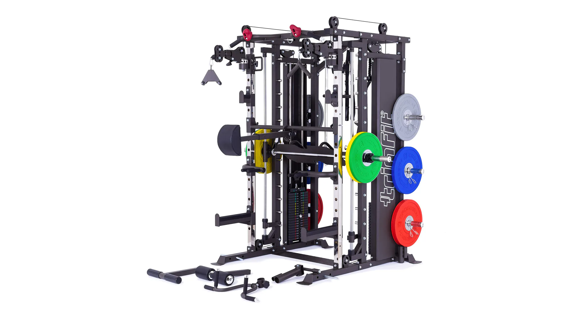 TRINFIT Multi Smith CX80 nabízí dva zásobníky zátěže o váze 90 kg (dohromady tedy až 180 kg závaží!). Zároveň nabízí nepřeberné množství druhů cvičení formou tricepsových kliků, tlaků na prsa, ramena, kladek atd... Dvě protisměrné kladky je možné polohovat v 18 výškových polohách, můžete tak perfektně procvičit celé tělo.