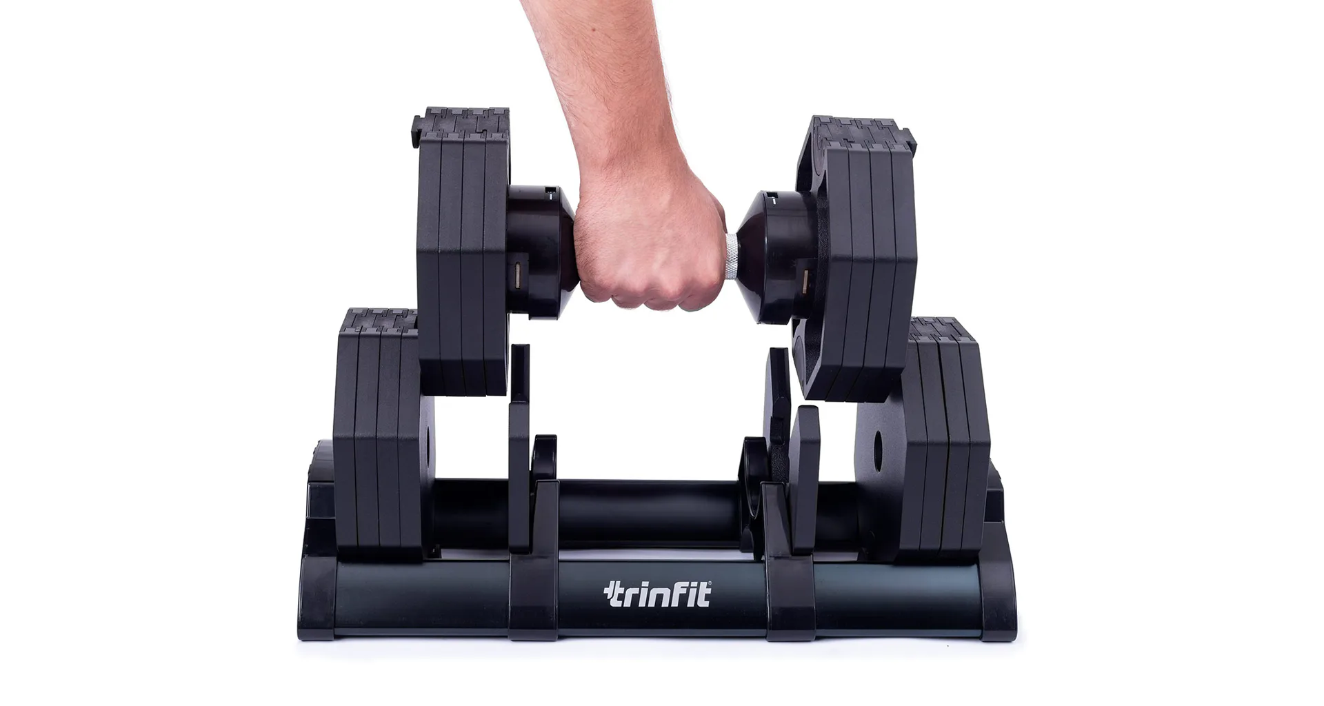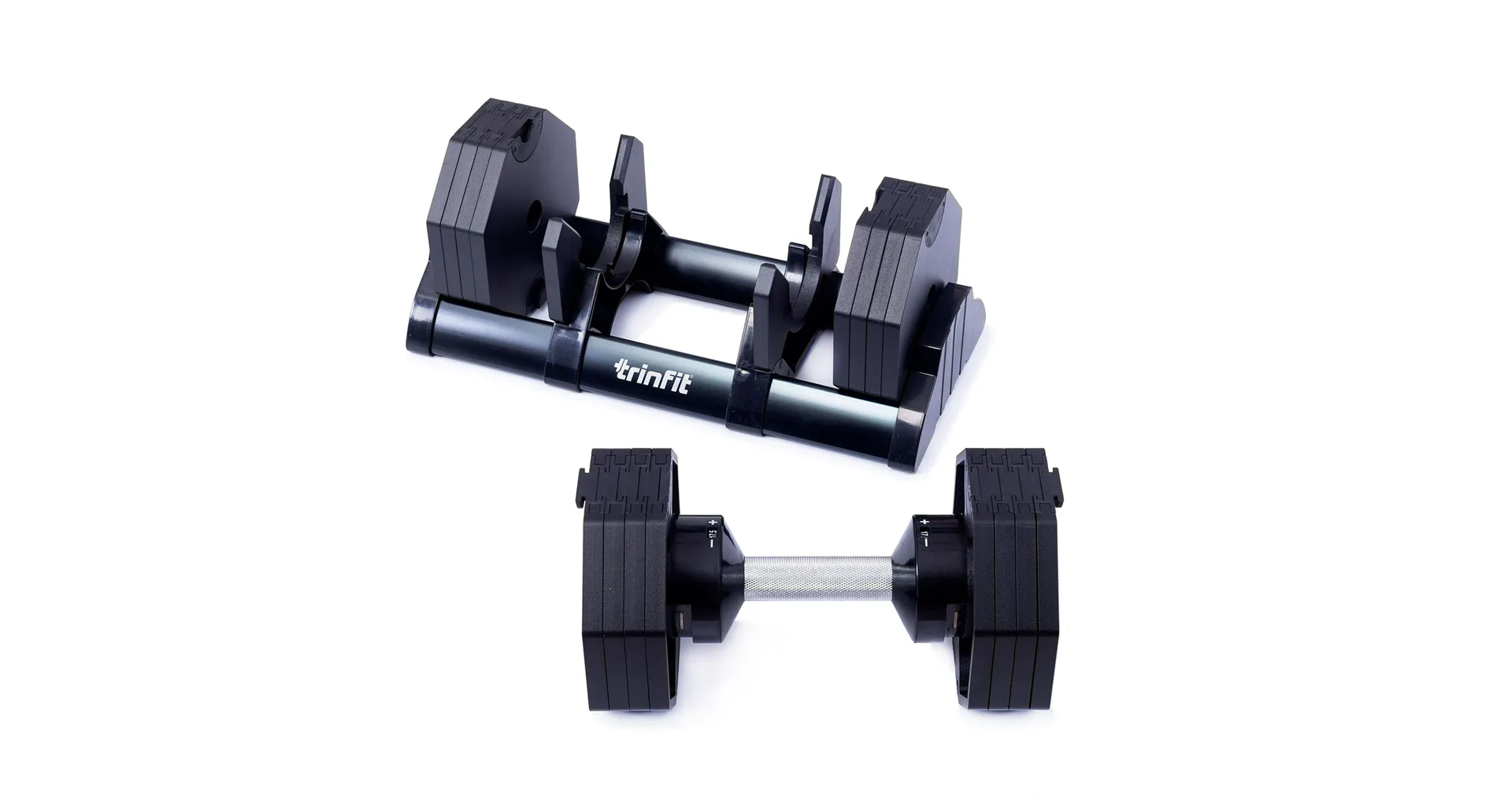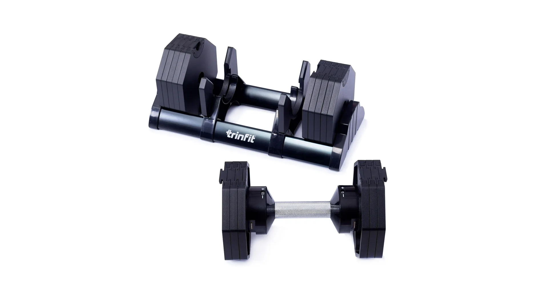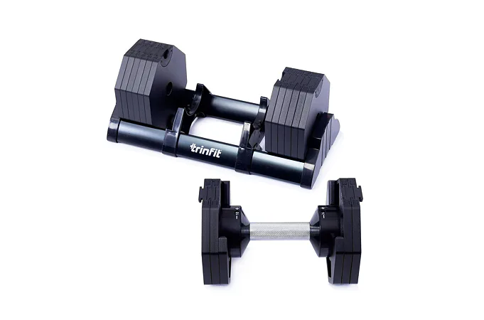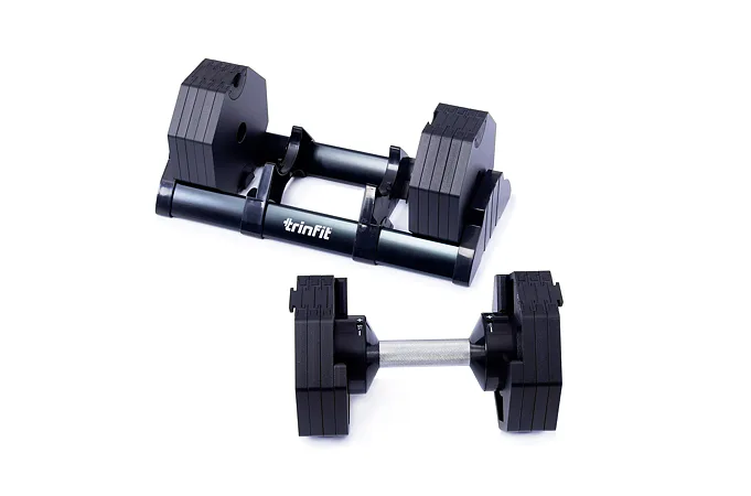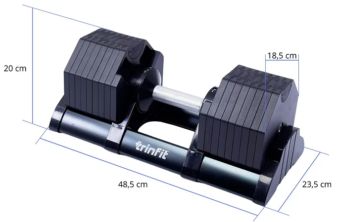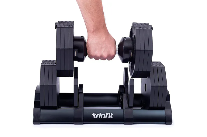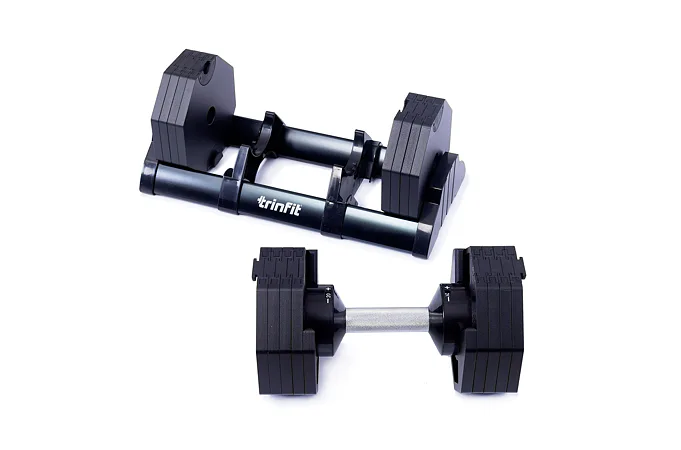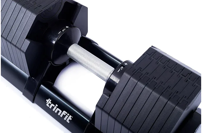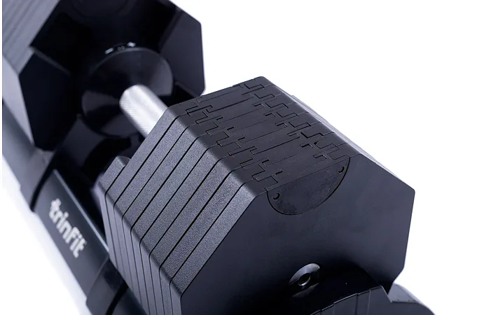 Nastavitelná činka TRINFIT OctaBlock s praktickým řešením úpravy zátěže. Pomocí praktického nakládacího/vykládacího systému nebyla změna hmotnosti nikdy snazší: nakládací činka funguje na principu disků (závaží) a otočném kolečku, na kterém si nastavíte požadovanou váhu a vybrané závaží se vám na činku „přicvakne“. Výhoda tohoto systému je velmi rychlá volba závaží a ušetření prostoru.