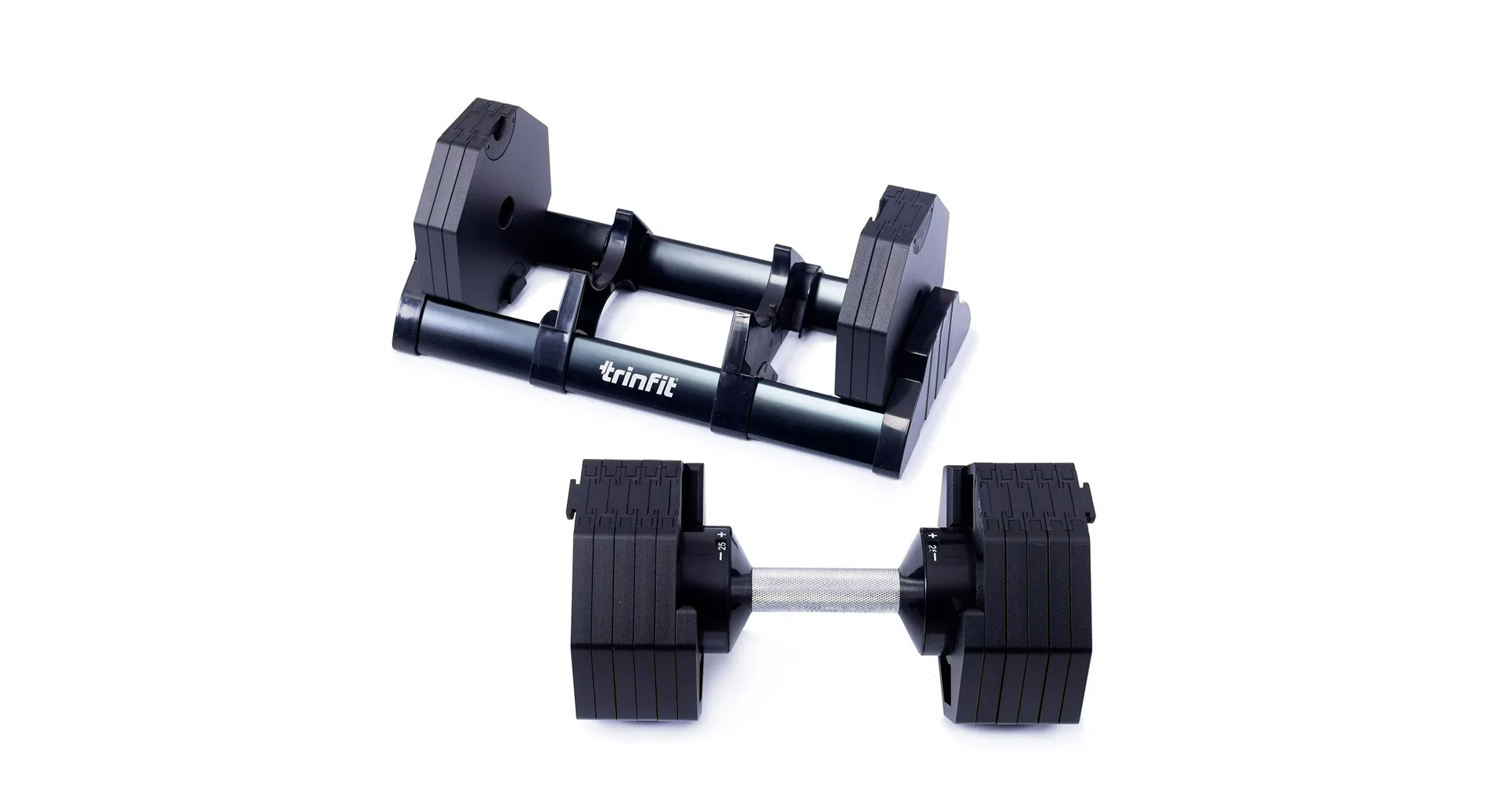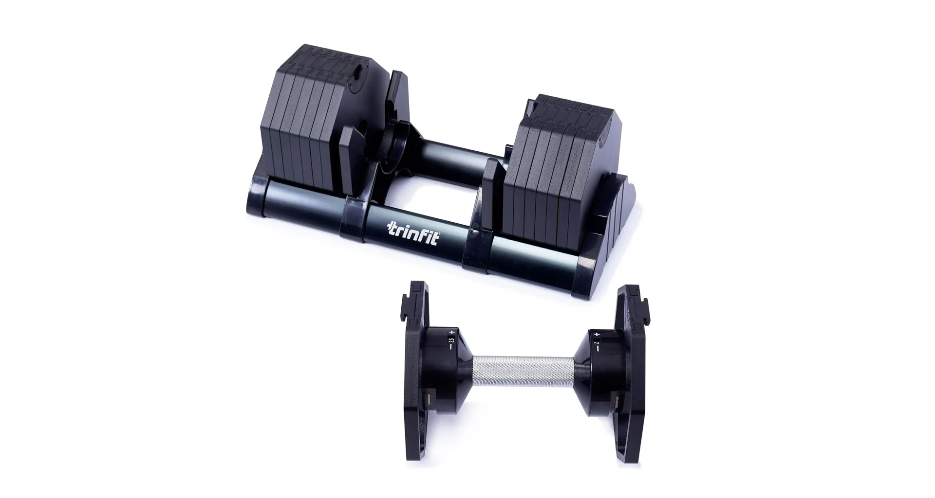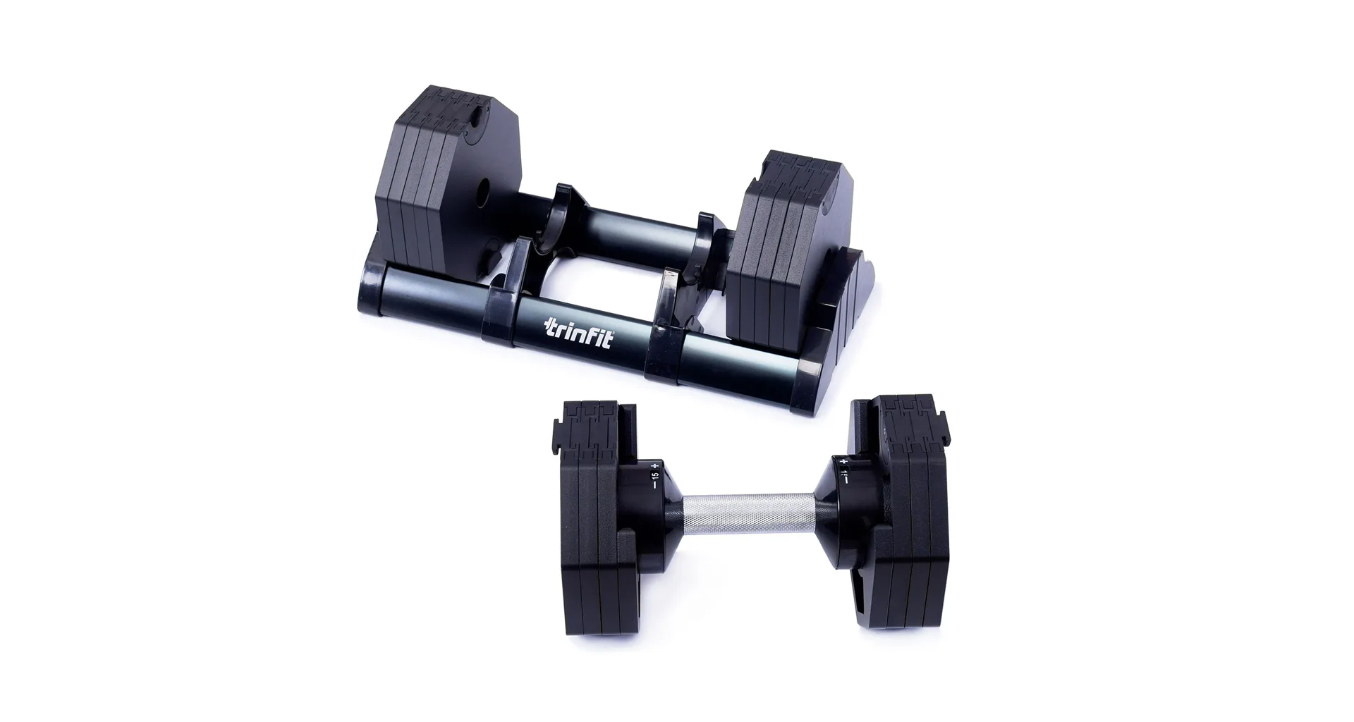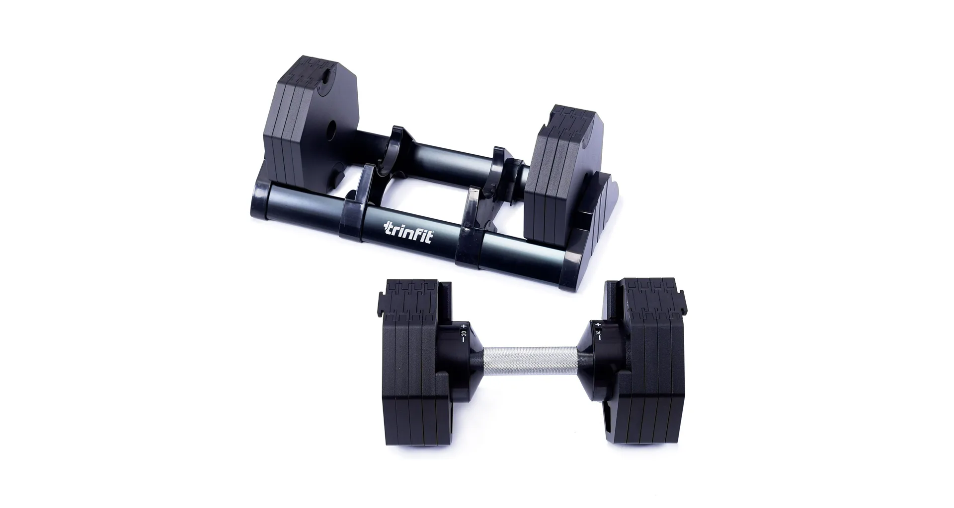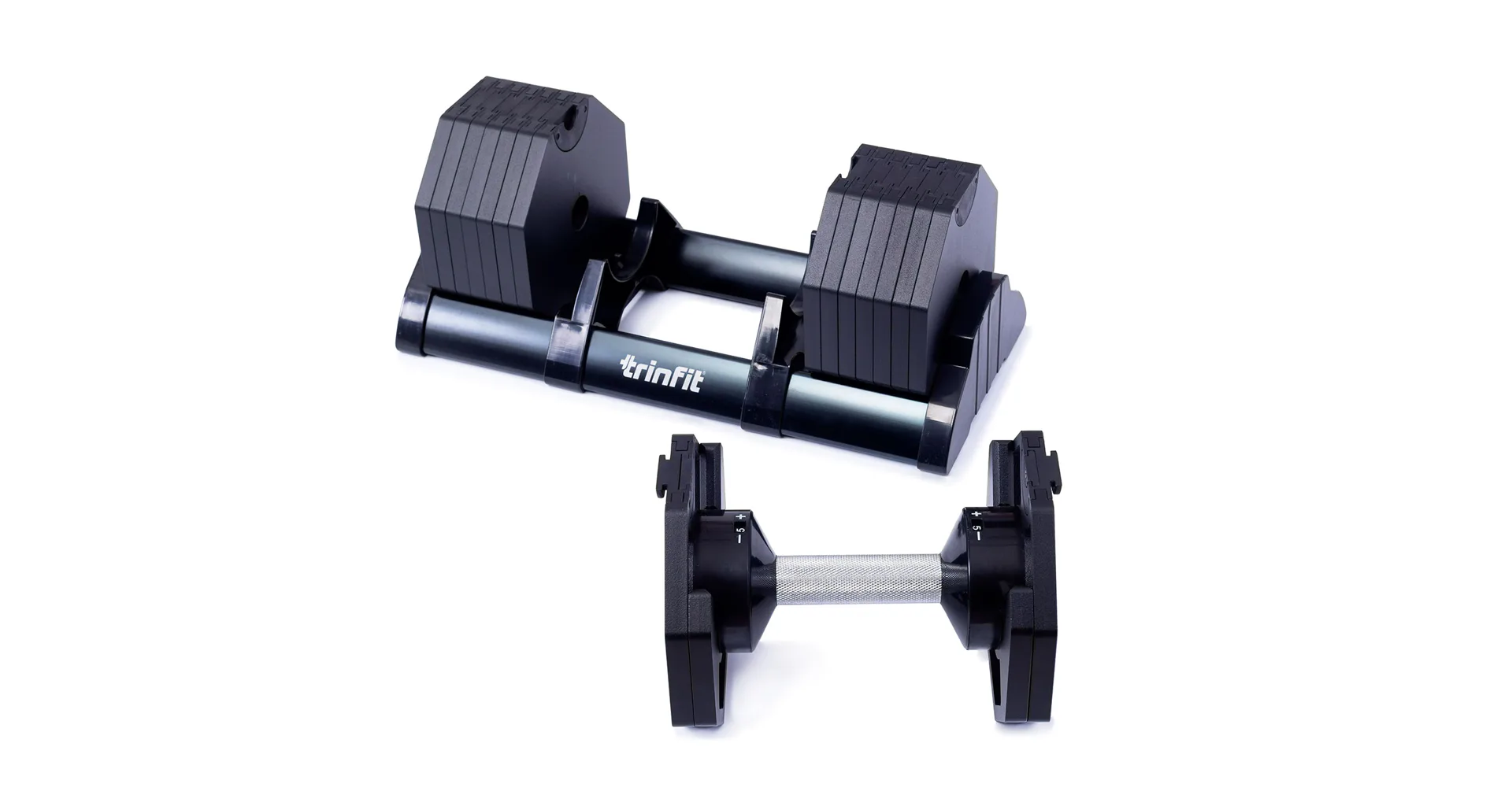 Nastavitelná činka TRINFIT OctaBlock s praktickým řešením úpravy zátěže. Pomocí praktického nakládacího/vykládacího systému nebyla změna hmotnosti nikdy snazší: nakládací činka funguje na principu disků (závaží) a otočném kolečku, na kterém si nastavíte požadovanou váhu a vybrané závaží se vám na činku „přicvakne“. Výhoda tohoto systému je velmi rychlá volba závaží a ušetření prostoru.