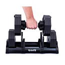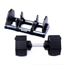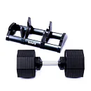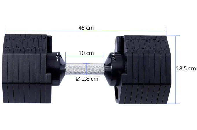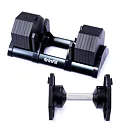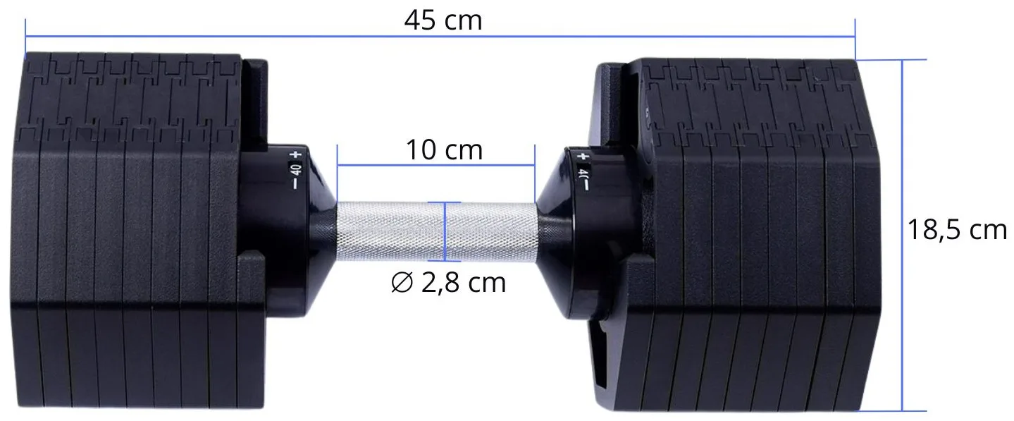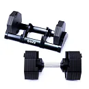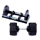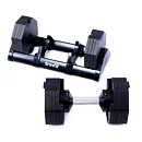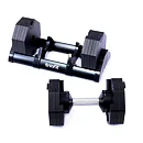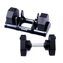 Tento set obsahuje činku s volitelnou hmotností, od 2,5 do 40 kg v krocích po 2,5 kg. Bezpečný trénink a snadnou manipulaci zajišťuje patentovaný blokovací mechanismus. Samotná hmotnost lze upravit pouze v okamžiku kdy je činky uložena v základním stojanu, který je samozřejmě součástí balení.