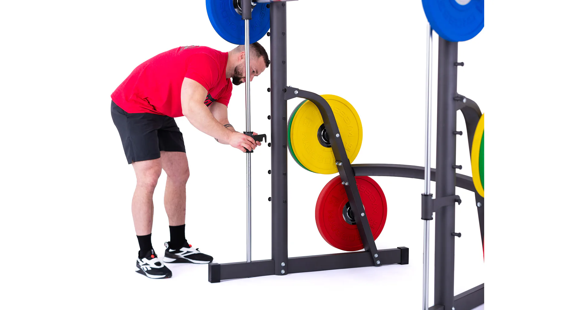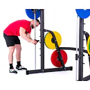 Po stranách konstrukce jsou 4 odkládací trny na kotouče. Díky stabilní konstrukci a bezpečnostním zarážkám je cvičení bezpečné a pohodlné.