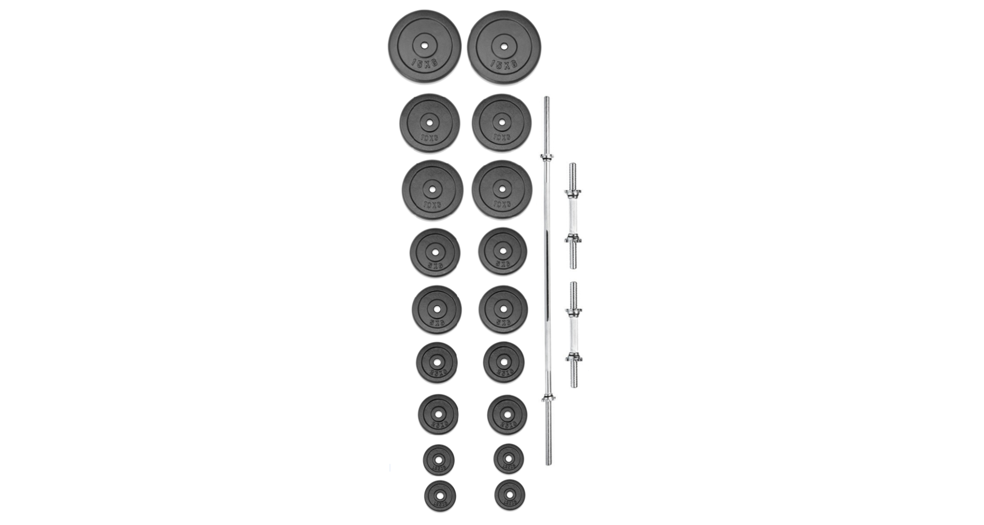 Variabilný činkový komplet zostavený z kvalitných komponentov je vynikajúcim doplnkom každej domácej aj komerčnej posilňovne. Rozmanitá skladba setu zaručuje komfortný a bezpečný tréning. Súčasťou tohto setu je veľký obojručný hriadeľ na činku, dva jednoručné hriadele a sada liatinových kotúčov, všetko s vŕtaním 30 mm (priemer používaný aj väčšinou výrobcov posilňovacích lavíc a strojov). Uvedená váha setu je vrátane osi.