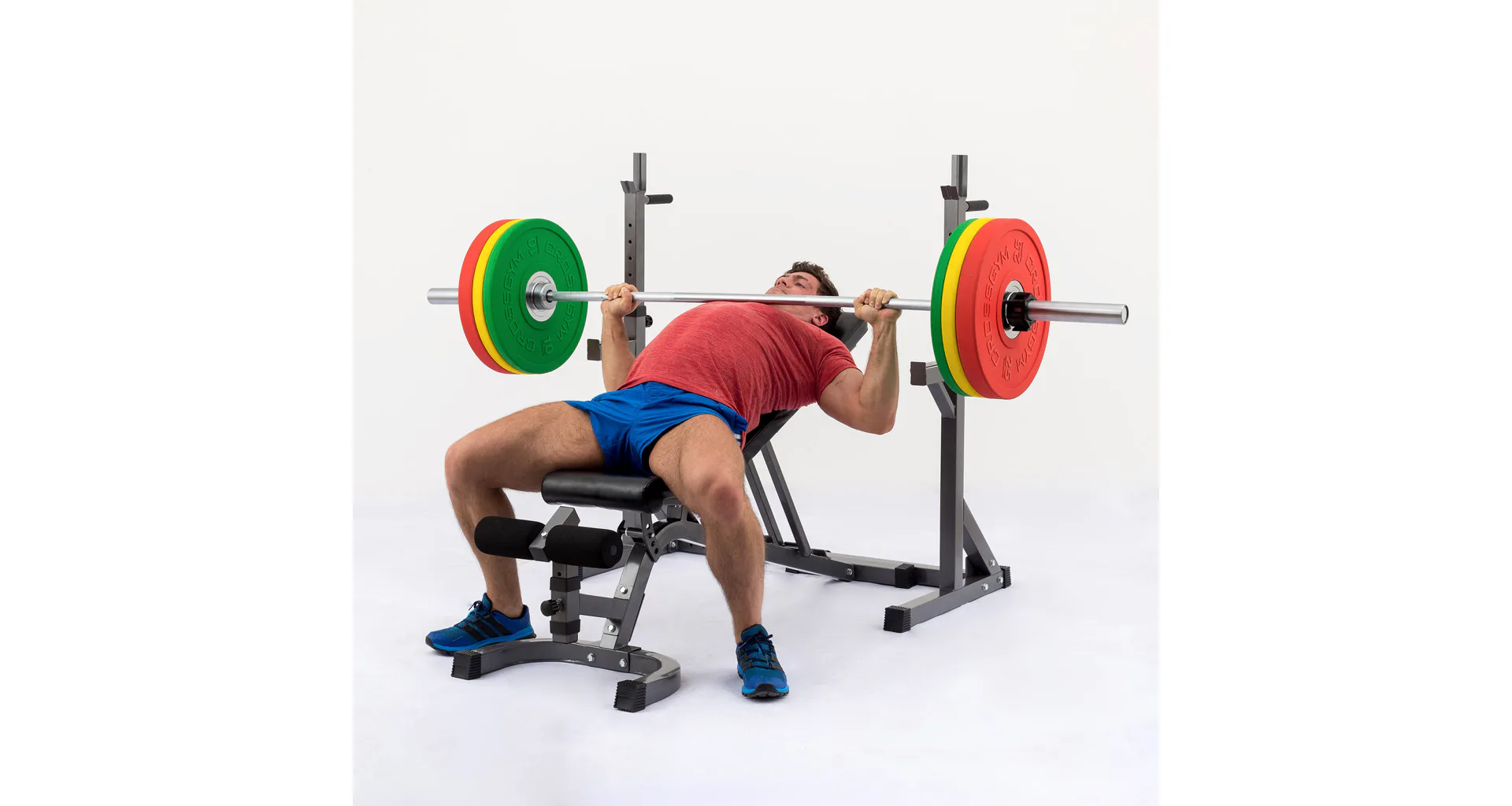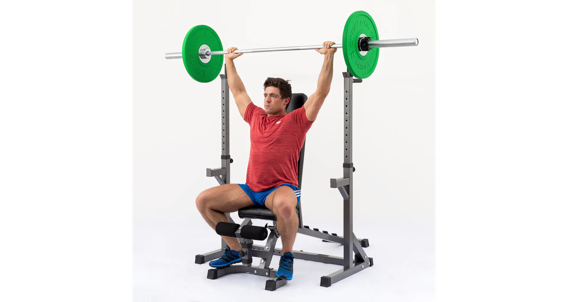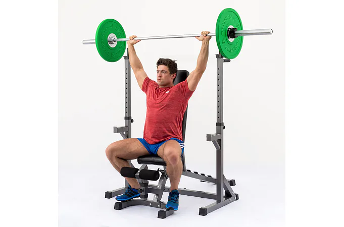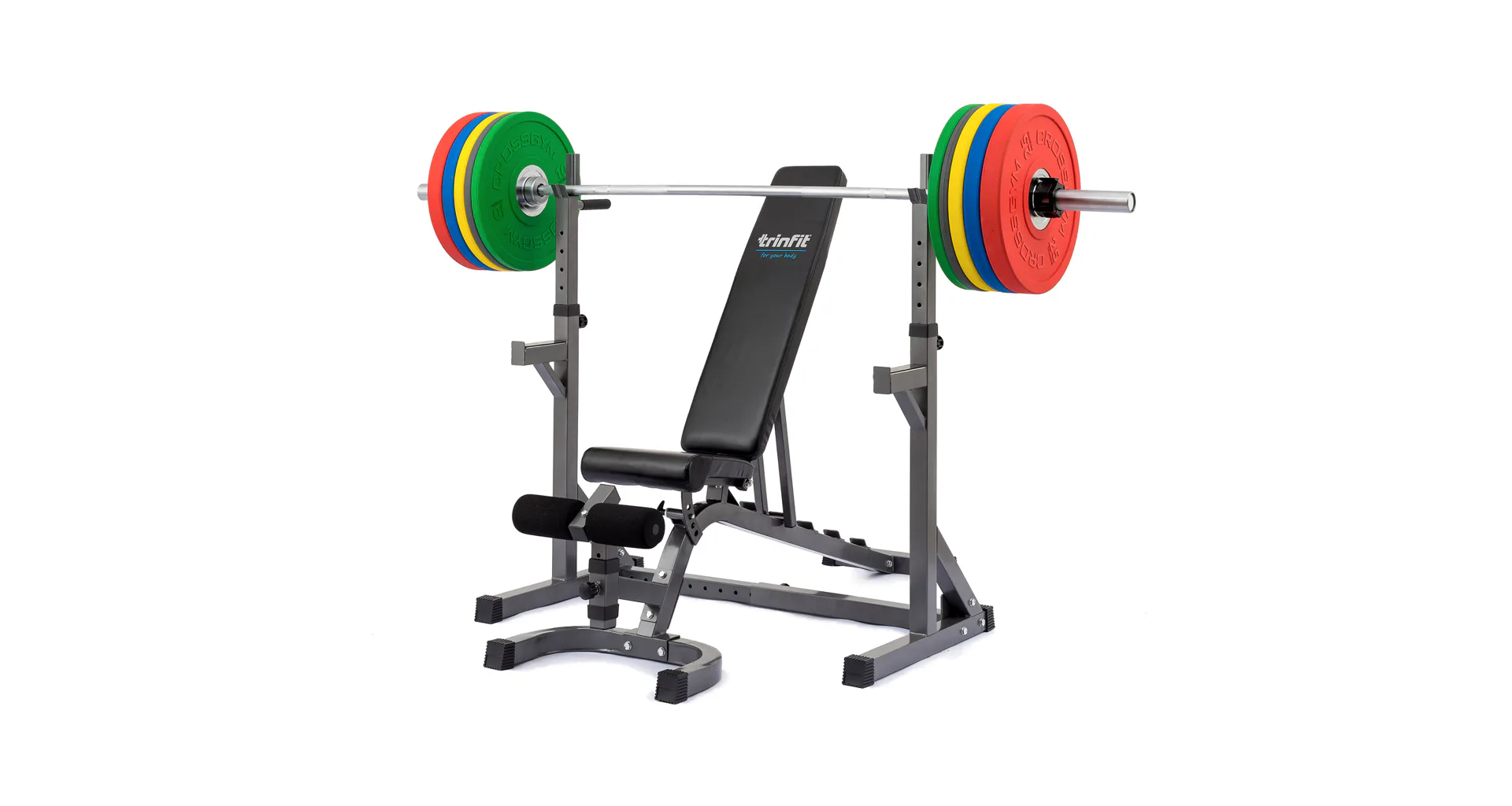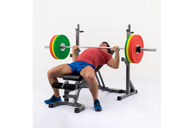 Základné výhody tohto setu sú masívna oceľová konštrukcia z profilov 50 x 50 mm, silné odolné čalúnenie a mimoriadne všestranné použitie vďaka veľkému rozsahu polohovania v rozsahu - 20° až + 83° a nastaviteľnej šírky a výšky stojanu. Vďaka možnosti negatívneho sklonu je možné lavicu využiť na cviky brucha, nastaviteľná opierka nôh umožňuje optimálnu polohu nižším aj vyšším osobám. Vďaka spojenej konštrukcii s jedinečnou možnosťou nastavenia šírky a výšky je stojan použiteľný pre všetky typy činiek a pre všetky postavy a súčasne je oproti dvom samostatným stojanom stabilnejší. Činku je možné doňho pohodlne odložiť s väčšou razantnosťou.