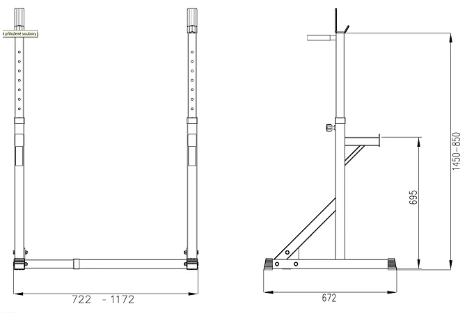 - nastaviteľná šírka a výška stojanu, využitie aj na drepy
