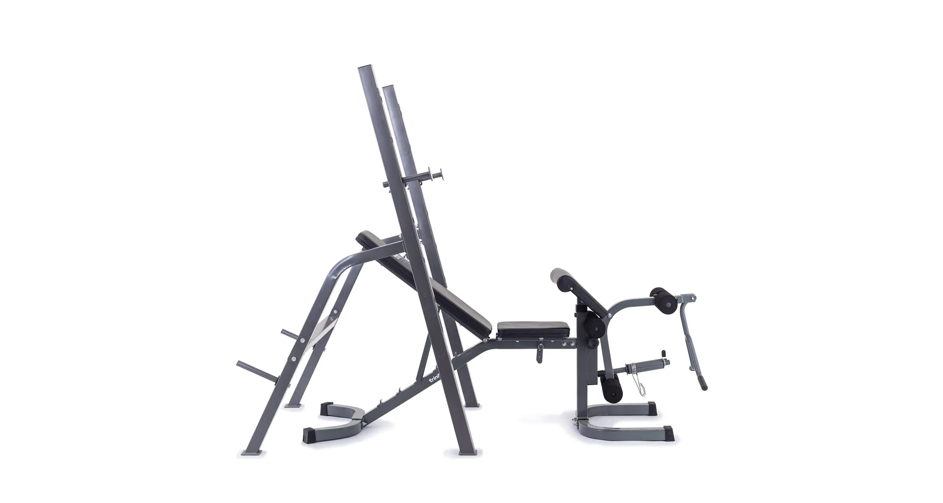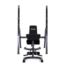 Narozdiel od väčšiny stojanov tejto cenovej kategórie má stojan väčší rozstup a umožňuje teda správny úchop. Stojan má možnosť jednoduchého výškového nastavenia hákov na činku v rozsahu 71 až 161 cm a je teda použiteľný pre všetky cviky a všetky výšky postáv až do 200 cm. Výhodou stojana sú dva odkladacie tŕne na kotúče umiestnené na zadnej strane stojana, čím sa jednak zvyšuje stabilita stojana a kotúče je možné pohodlne odložiť.
