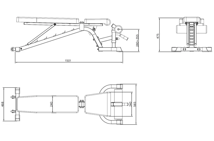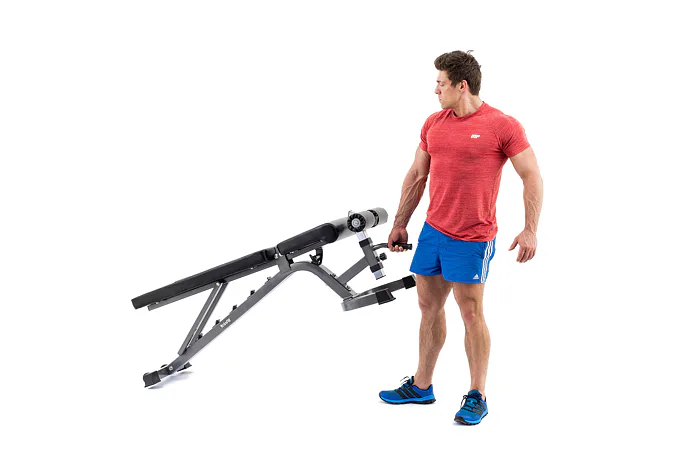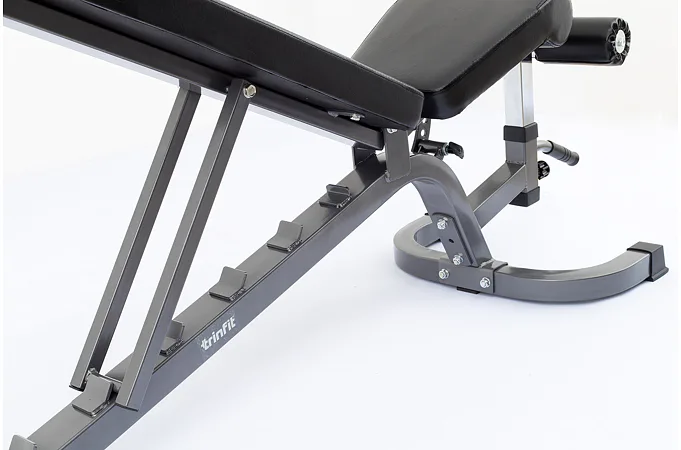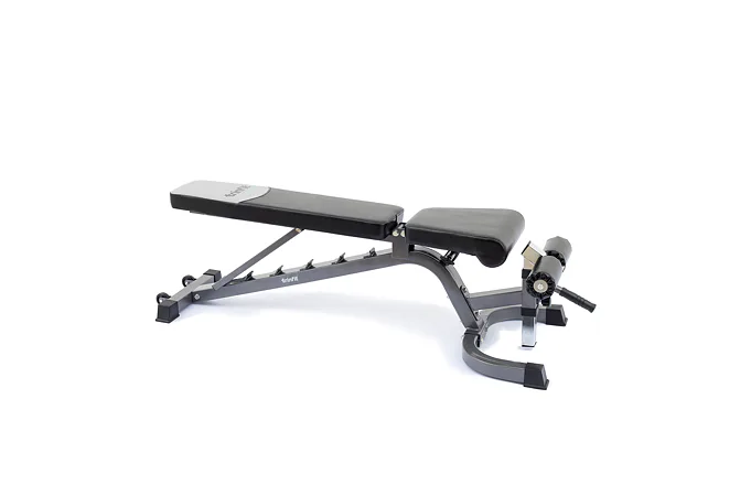 Súčasťou setu je posilovacia lavica z profilov 70 x 50 mm s mimoriadne všestranným použitím vďaka veľkému rozsahu polohovania v rozsahu - 20° až + 87°. Vďaka možnosti negatívneho sklonu je možné lavicu využiť na cvičenie brucha, nastaviteľná opierka nôh umožní optimálnu polohu drobnejším aj vyšším osobám až do 205 cm. Mimoriadne odolné dvojvrstvové čalúnenie o hrúbke 60 mm zaručuje komfortné cvičenie aj s vyššími váhami. Vďaka transportným kolieskam a úchopovej rukoväti je možné lavicu ľahko premiestniť.