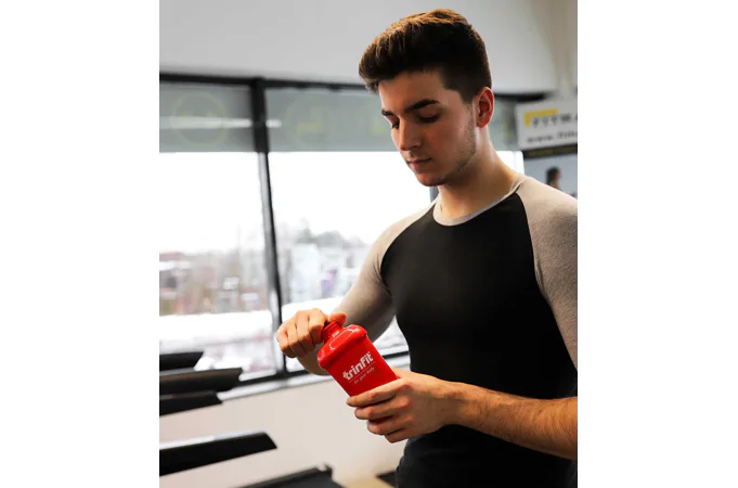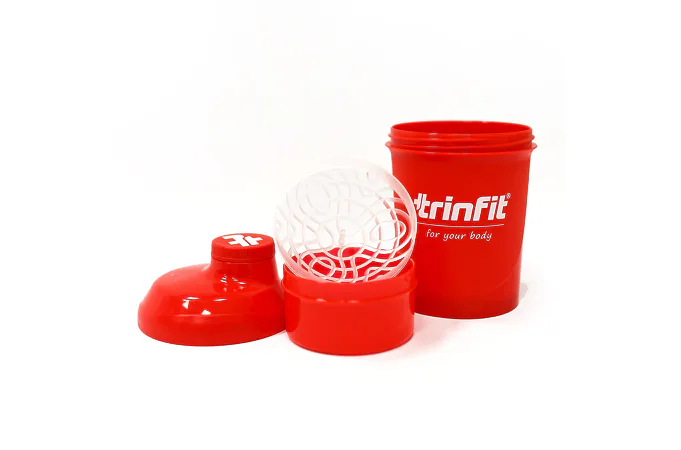 TRINFIT Shaker Red Fire je praktický dvojdielny šejker na prípravu koktailov so skrutkovacím uzáverom. Objem shakera je 300 ml s poschodím na tablety, kapsule alebo prášok (150 ml). Spodná časť slúži na prášok, tablety a kapsule, vrchná na prípravu nápoja. Mriežka zaistí kvalitné premiešanie kokteilu.