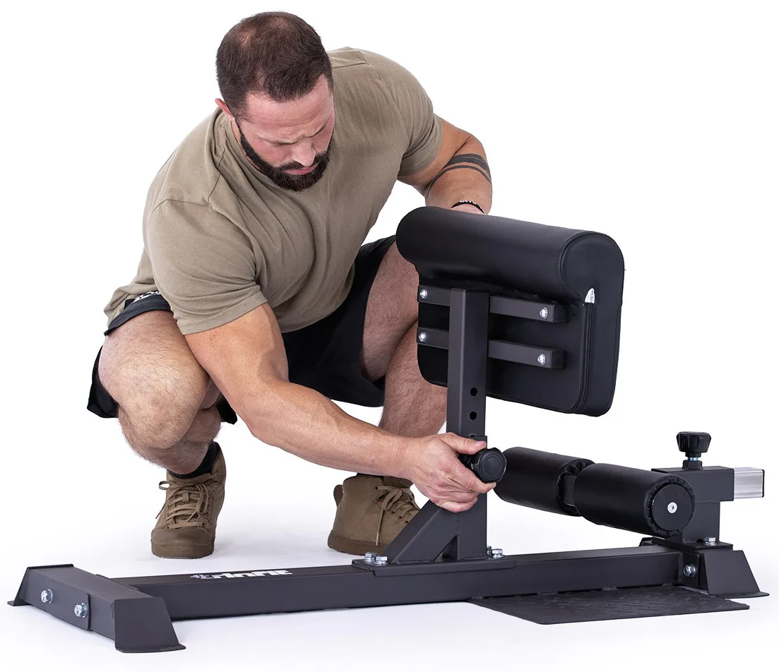 Stroj navíc obsahuje nastavitelné prvky jako jsou: Nastavitelná opěrka ze zadní strany stehen, pro ideální zvolení výšky podle potřeby a dále nastavitelné válce pro udržení chodidel a nohou na jednom místě. Nastavení, je díky kolíku na pružince velmi rychlé a efektivní.