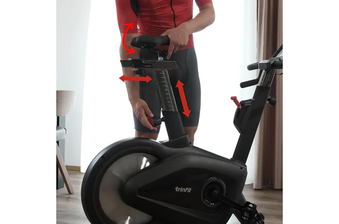 Díky vysoké variabilitě nastavení trenažéru, jako je například možnost výškového nastavení řídítek, nebo vertikální i horizontální polohy sedla, je TRINFIT Spin S700i perfektní volbou pro lidi jakéhokoliv vzrůstu až do výšky 200 cm.