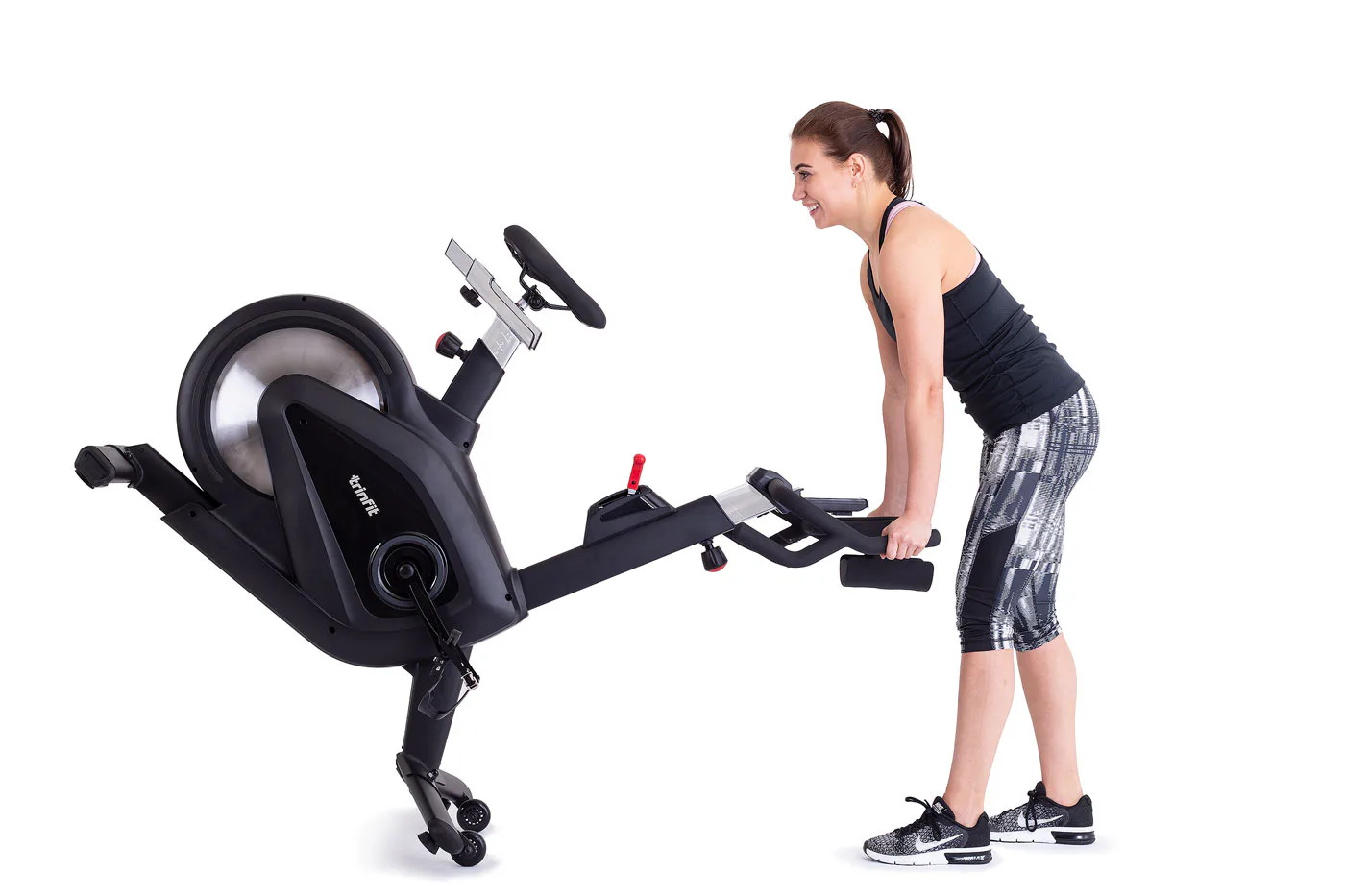 Díky tomu, že je trenažér z 90% již složený je montáž velice snadná! Pro snadnou manipulaci má rotoped navíc transportní kolečka.