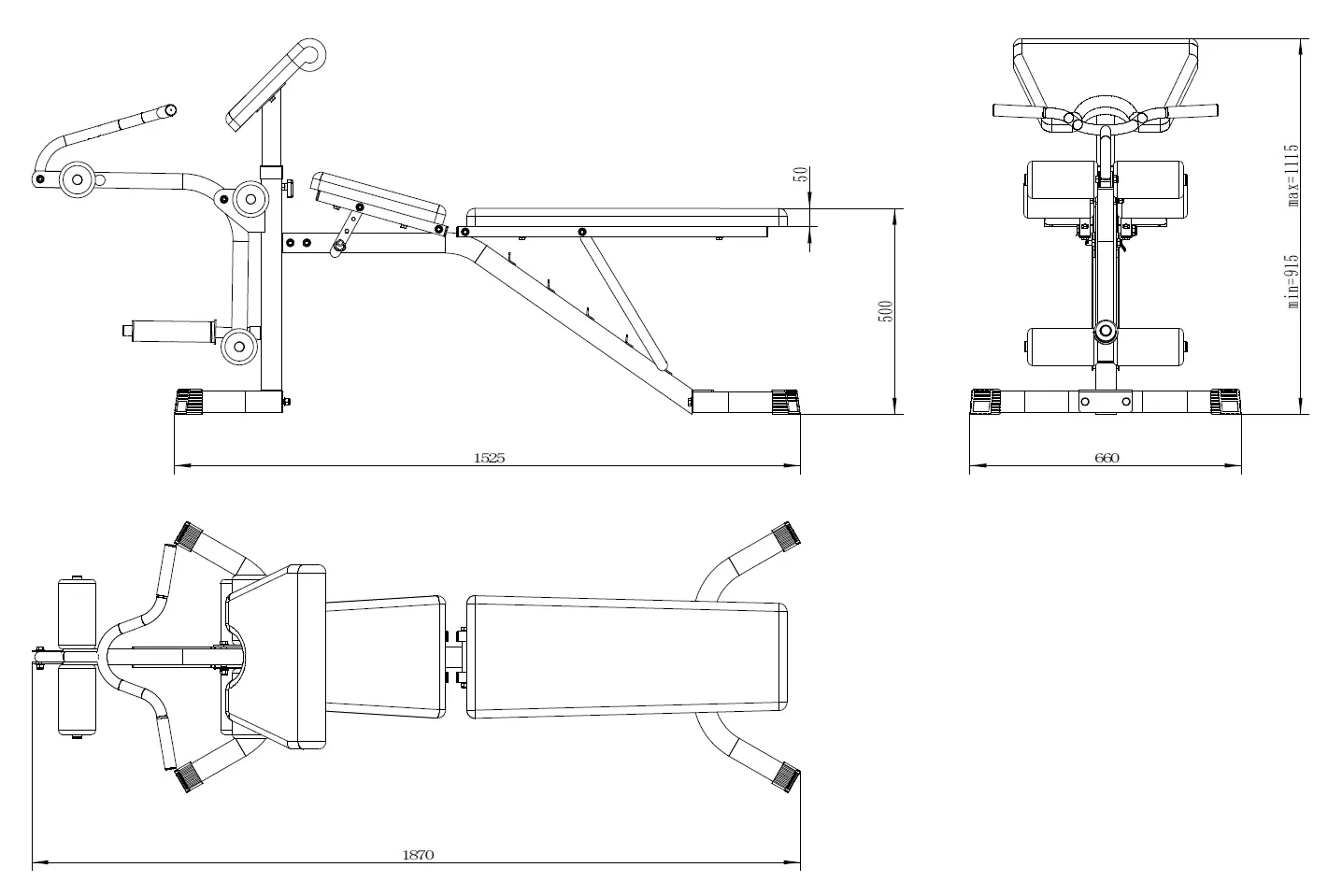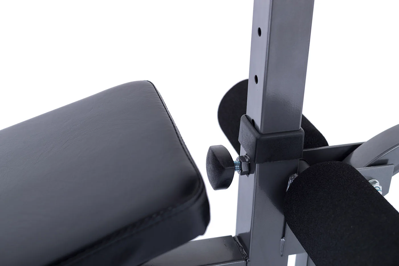 Lavice má mimořádně všestranné použití díky velkému rozsahu polohování v rozsahu 0° až + 85° a nastavitelnému adaptéru na předkopávání/zakopávání a bicepsovému pultu.