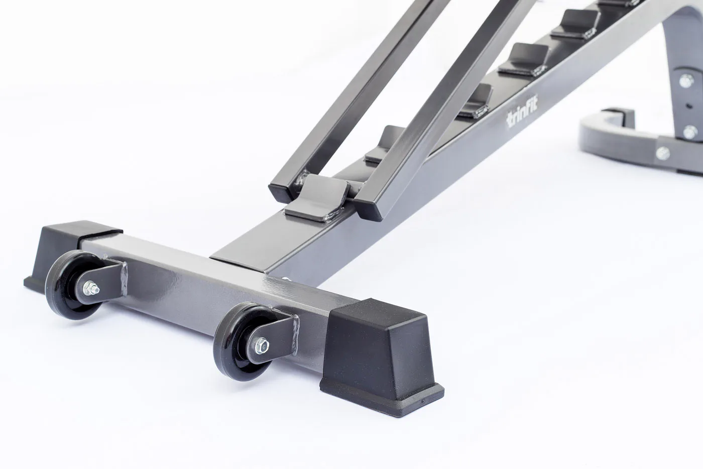 Posilňovaciu lavicu TRINFIT VARIO LX7 je možné kombinovať s činkovými stojanmi, posilňovacou klietkou, či len sadou jednoručných činiek. Vyberte si zo širokej ponuky príslušenstva značky TRINFIT a vytvorte si zostavu spĺňajúcu vaše nároky. Jednoduché, rýchle a bezpečné polohovanie umožňuje jednoduchú zmenu polohy lavice. Vďaka transportným kolieskam a úchopovej rukoväti je možné lavicu jednoducho premiestňovať.