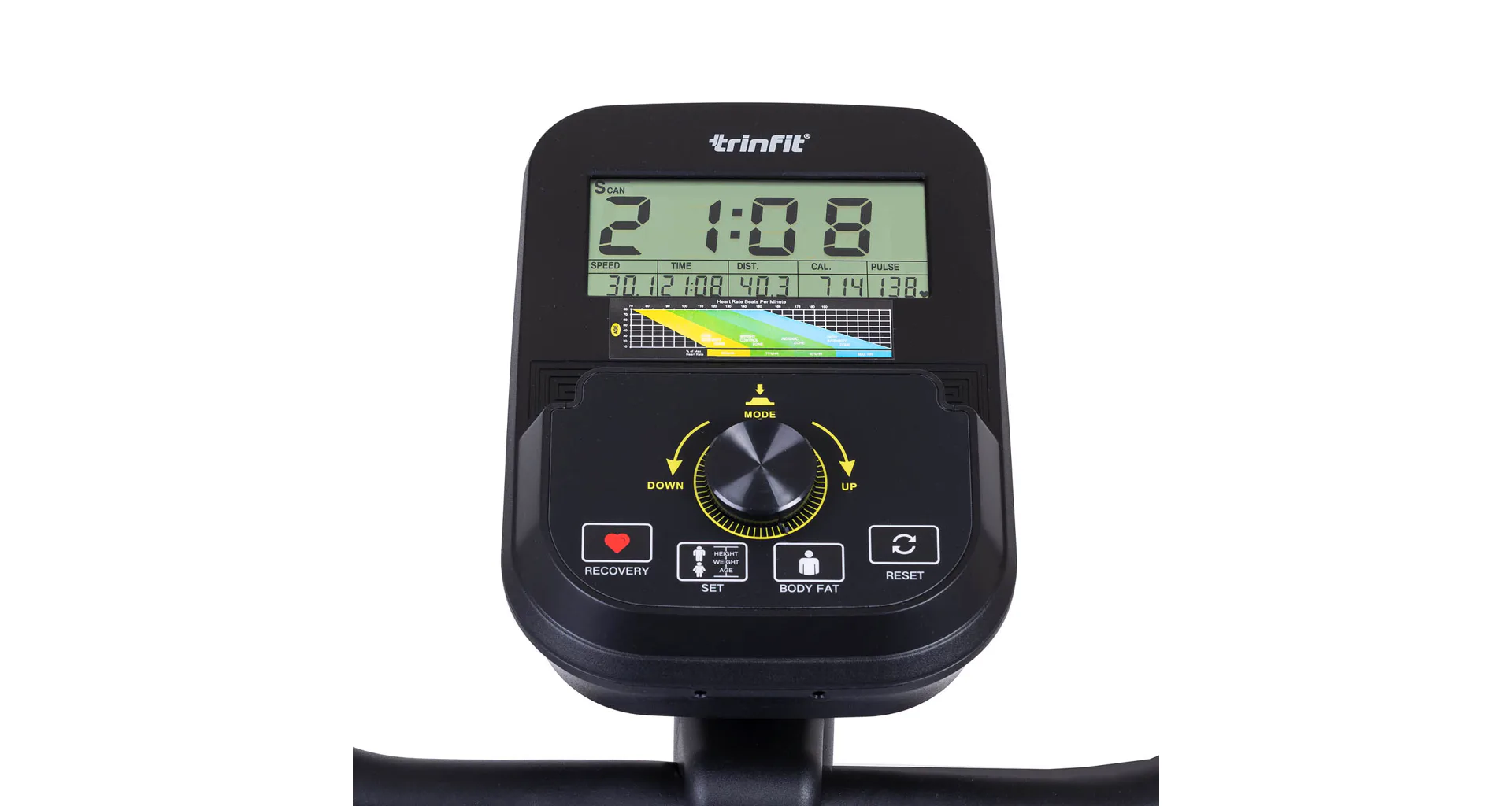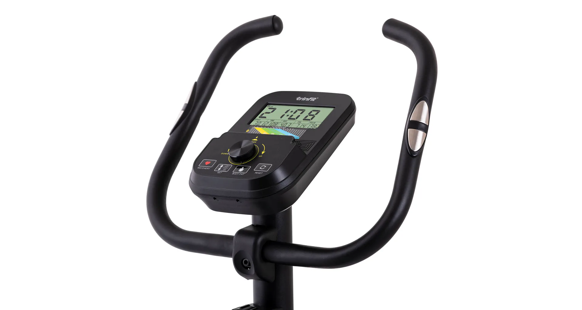 TRINFIT Vivo B400 nabízí přehledný LCD displej, který vám vyobrazí všechny základní hodnoty pro váš trénink. Umožní vám sledovat váš trénink v reálném čase pomocí dat monitorujících váš čas, vzdálenost, rychlost, spálené kalorie, otáčky za minutu a srdeční frekvenci.