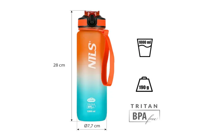 NILS Camp NCD68 je 1000 ml fľaša na vodu vyrobená z tritanu.