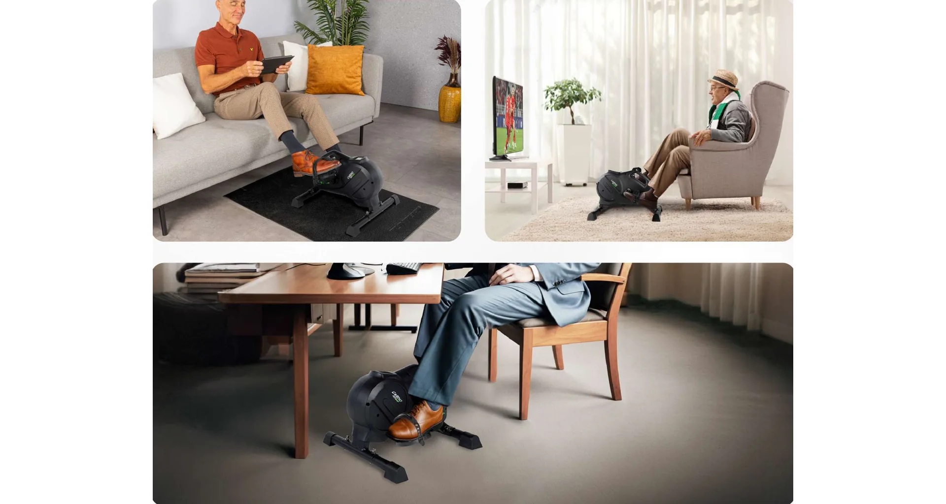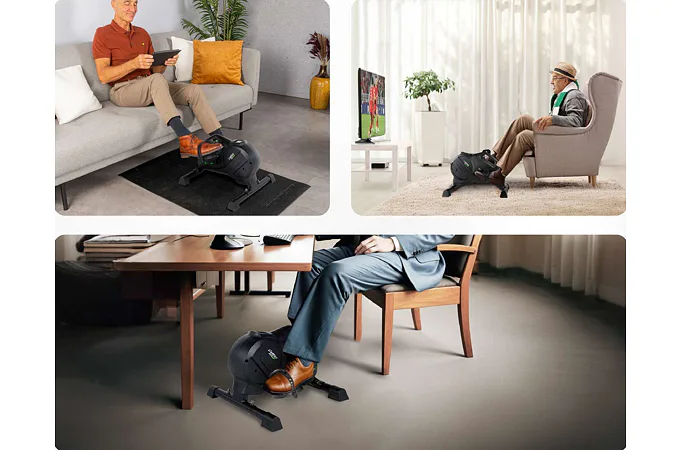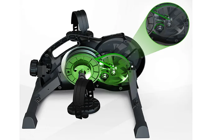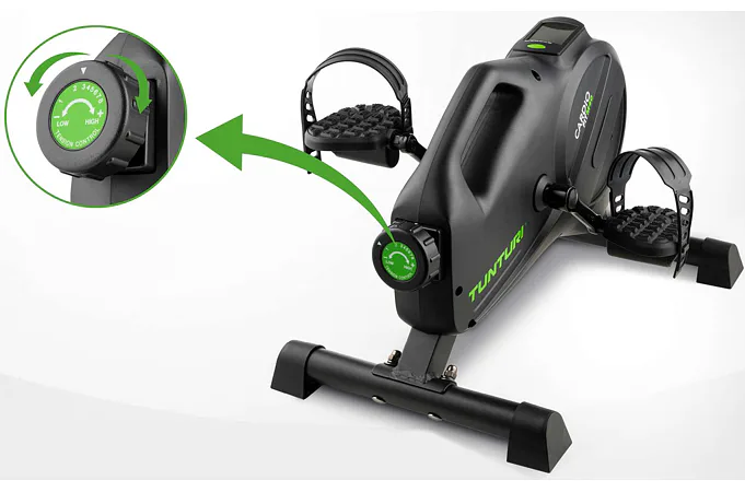 Náročnosť šliapania sa reguluje otočným regulátorom, ktorý ponúka 8 úrovní odporu, pričom sa dotiahne alebo povolí podľa potreby. Šliapať je možné oboma smermi z pohodlia stoličky, kresla alebo gauča, kde je lepší uhol nôh a kolena.