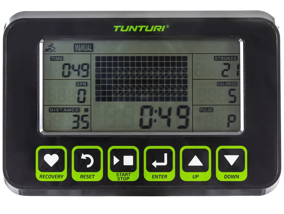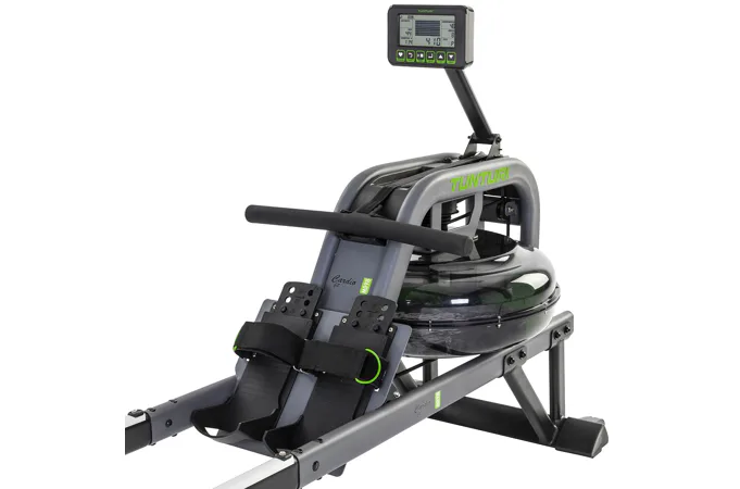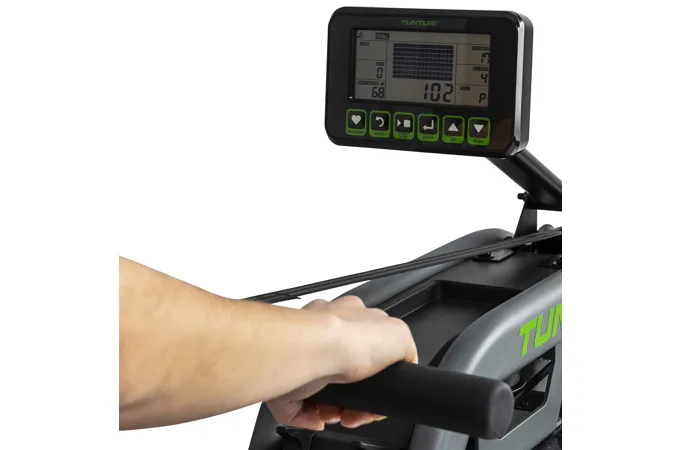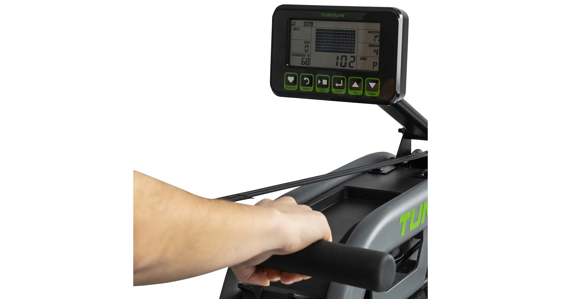 Tunturi Cardio Fit R60W je domácí veslovací trenažér s robustní rámovou konstrukcí a kvalitními komponenty. Vodní brzdný systém s 6-ti úrovněmi odporu zajišťuje plynulý chod a rovnoměrné tahy simulující skutečné veslování ve vodě (Odpor je v 6 stupních vyvolaný pouze množstvím vody v nádrži).
