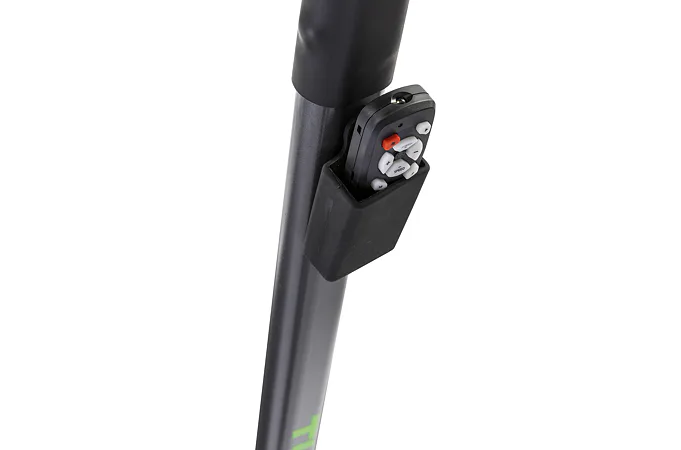 Součástí je počítač s dálkovým ovladačem, držák na ovladač, transportní kolečka a bezpečnostní stop pojistka.