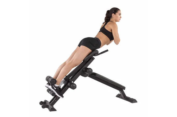 Kombinovanou lavici využijete při posilování spodních vzpřimovačů zad se snížením zatížení kyčelního svalstva nebo pro trénink svalstva břišního.