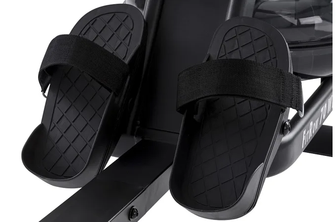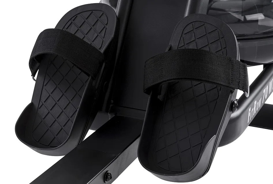 Veslovací trenažér Tunturi FitRow 70 je vyroben z kvalitních komponentů, má maximálně přirozenou ergonomii a kvalitní mechaniku. Odpor u tohoto trenažéru je vytvářen vodou v nádrži, která je umístěna v přední částí vesla. Nastavit si můžete 8 úrovní odporu prostřednictvím přidáním vody do nádrže (odpor není regulovatelný při tréninku)