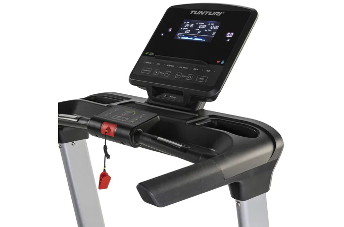 Nedílnou součástí trenažéru Tunturi FitRun 90i je počítač s LCD displejem, držákem na tablet/smartphone, USB portem pro napájení tabletu či telefonu, připojením MP3 pro poslech hudby a Bluetooth zařízením pro připojení tréninkové aplikace. Dále disponuje 2 x držákem na lahev, transportními kolečky a vyrovnávači nerovnosti.