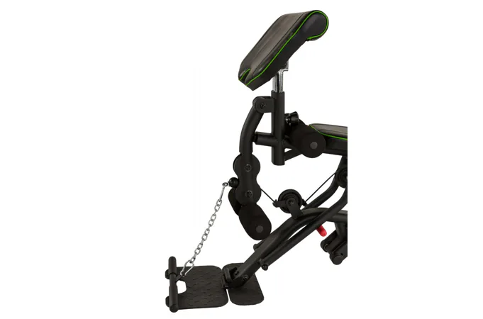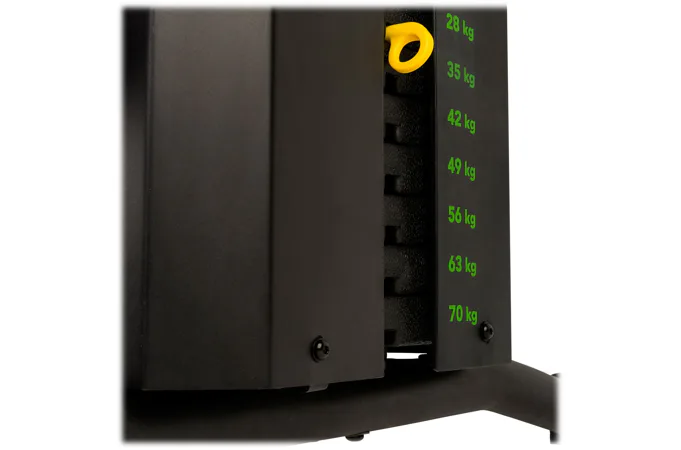 Zádová opěrka je nastavitelná, lze si jí upravit v závislosti na druhu cviku a proporcí Vaší postavy. To samé platí i u bicepsové opěrky, kterou si můžete nastavit ve vertikální poloze. Výška sedáku a kopače je pevně daná.
