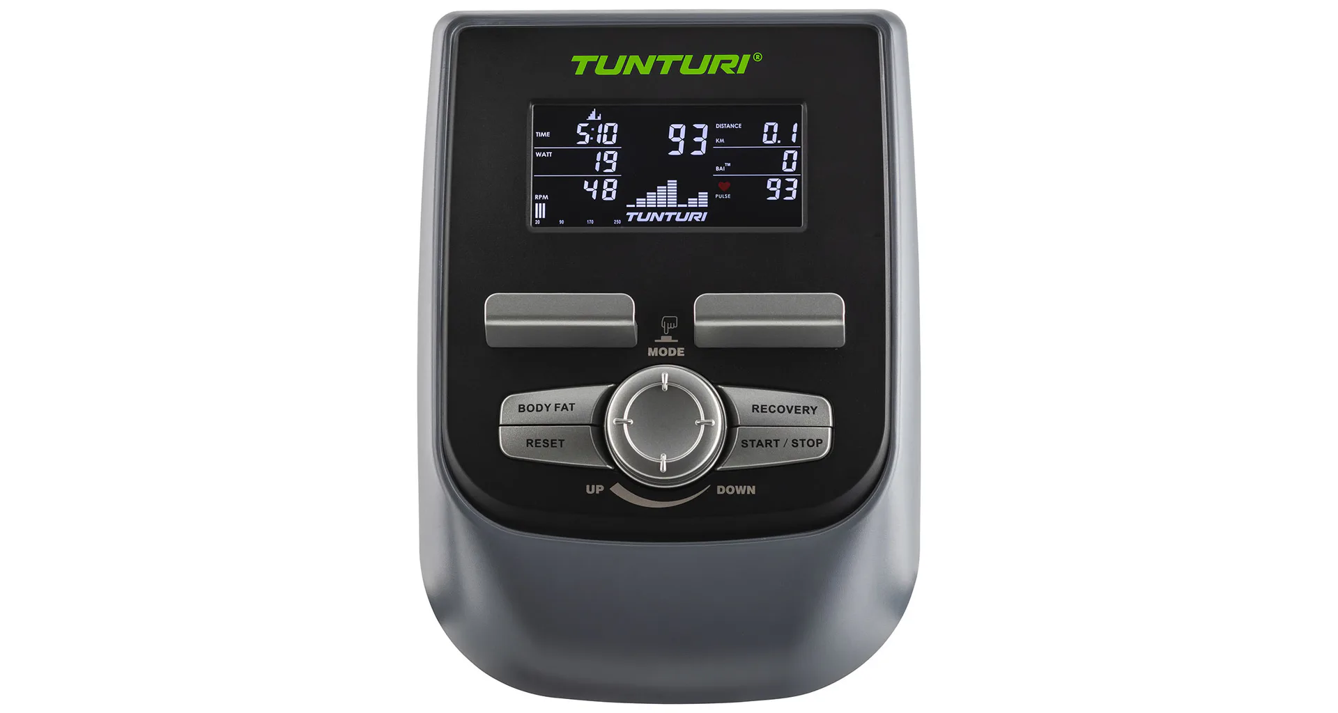 Jednoduše ovladatelný 5,5 " LCD displej nabízí bohatou programovou nabídku s 24 přednastavenými programy pro zvyšování kondice, spalování kalorií apod, včetně Recovery testu nebo Watt programu, HRC apod. Displej zobrazuje všechny běžné hodnoty jako je čas, aktuální rychlost, ujetá vzdálenost, spálené kalorie a hodnotu tepové frekvence (pomocí dlaňových snímačů, či hrudního pásu).