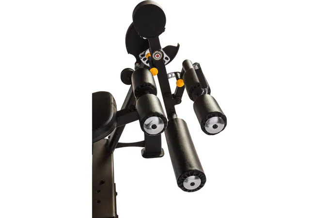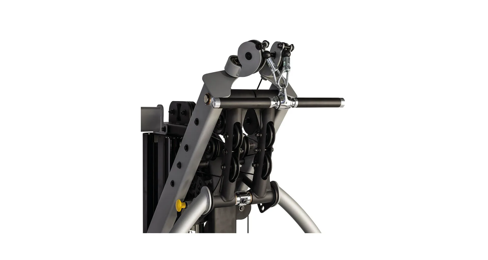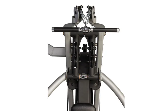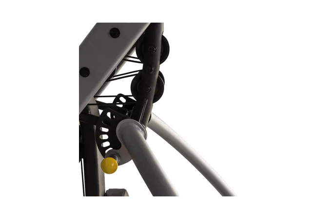 Kladkový systém je osazen průmyslovými ložisky pro delší životnost a lanka jsou opatřeny odolným povrchem proti poškození. Vertikální nastavení protisměrných kladek lze nastavitt ve 12 polohách a závaží tvoří přesné litinové pláty s tichým a hladkým chodem