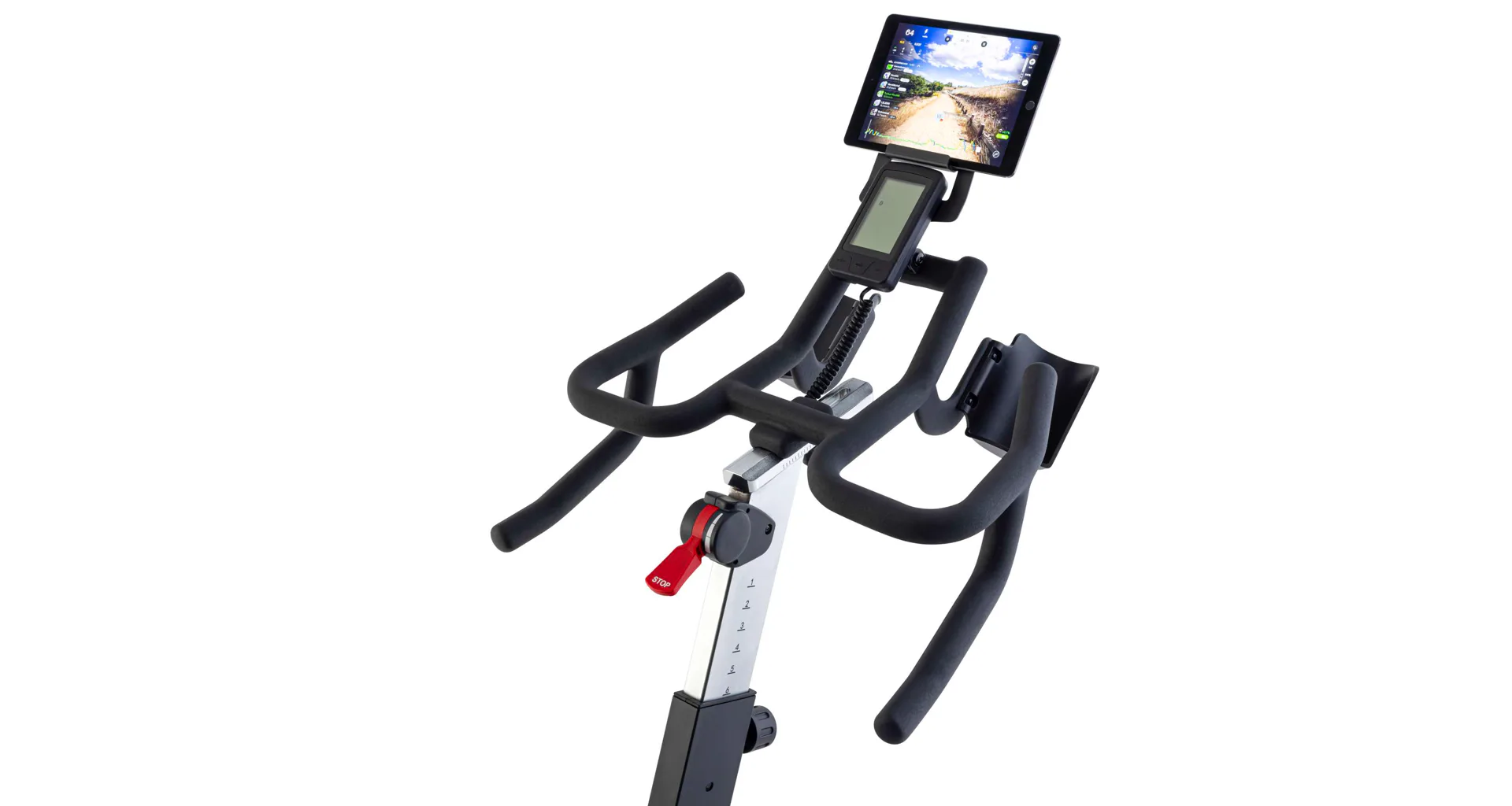 Jasný prehľad o spálených kalóriách. Zažite presnú kontrolu svojho výkonu počas tréningu s 5,5 palcovým LCD displejom, ktorý je naklápací, takže máte vždy jasný pohľad na monitor. Tablet alebo telefón môžete umiestniť do držiaka na tablet. Ľahko môžete ručne meniť medzi úrovňami odporu 1 až 32, vďaka pokročilému brzdnému systému PMS. Vďaka rýchlemu manuálnemu ovládaniu pomocou páčky ľahko nastavíte odpor, čo je ideálne pre dynamické tréningy alebo skupinové lekcie.