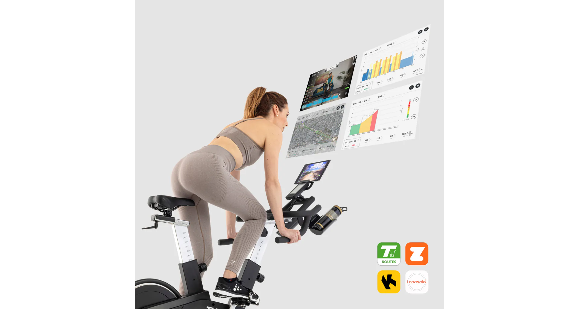 iConsole+ je bezplatná tréninková aplikace pro kompatibilní cardio trenažéry s Bluetooth, která funguje na Androidu i iOS a nabízí mapové trasy, archivaci tréninků i detailnější přehled o aktivitě. Je vhodná pro rotopedy, cyklotrenažéry, eliptické trenažéry a běžecké pásy a na Apple zařízeních podporuje také Apple Watch.