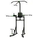 Konstrukce má integrovanou hrazdu na shyby, opěrky na ruce pro přednožování a madla na tricepsové nebo klasické kliky.