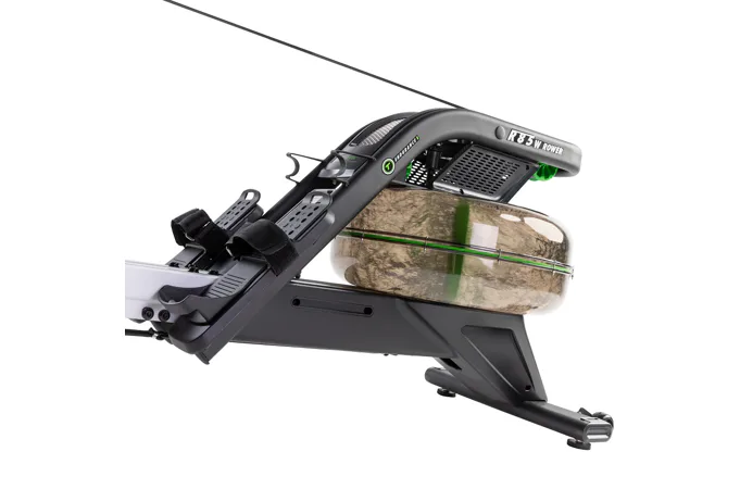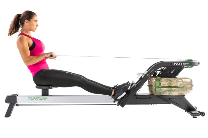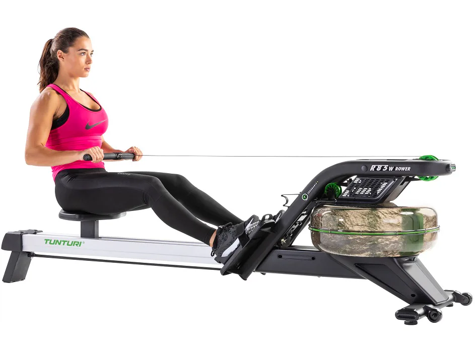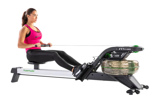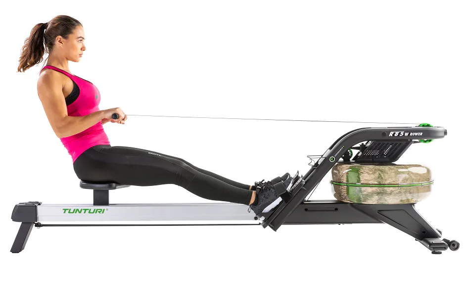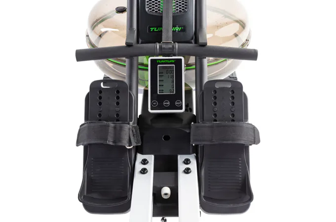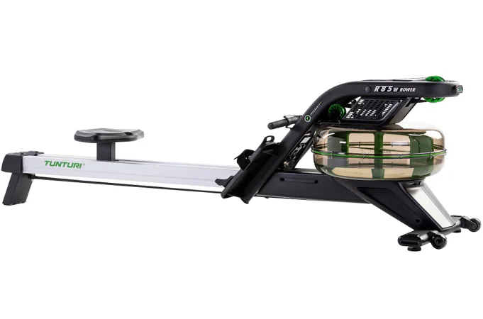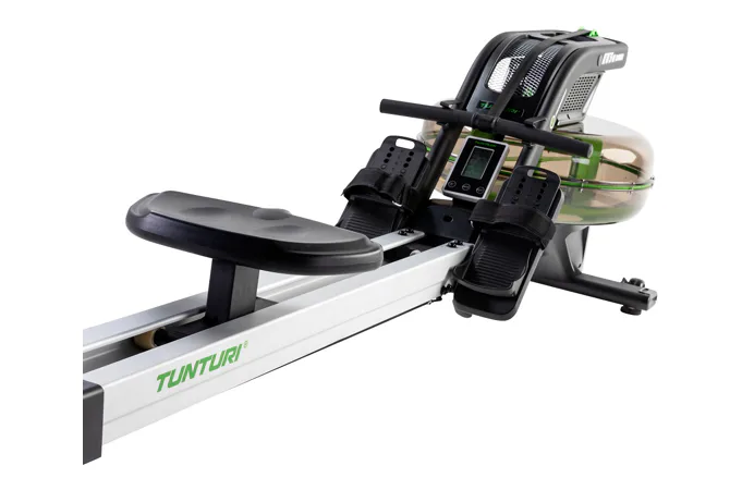 Veslovací trenažér TUNTURI R85W nabízí odpor vytvářený vodou v nádrži, která je umístěna v přední části vesla (čim více vody, tim větší odpor).