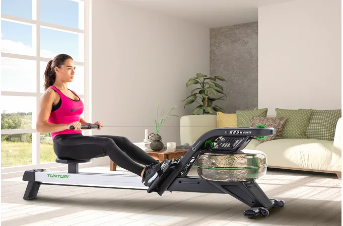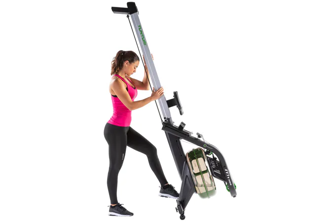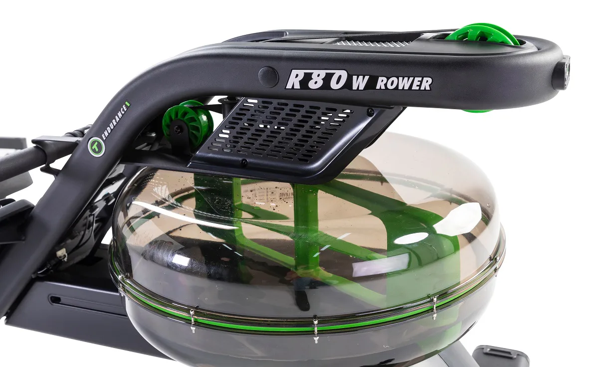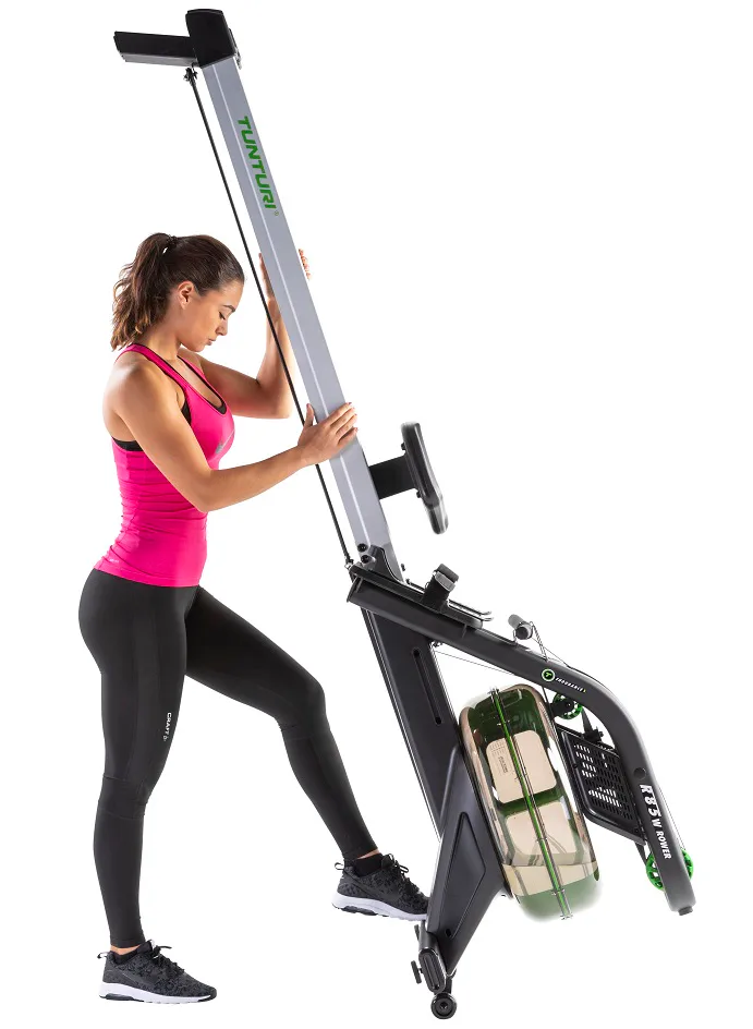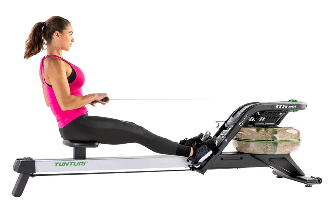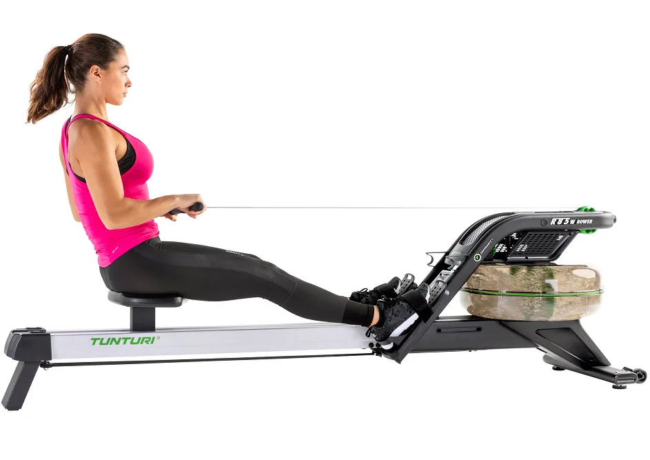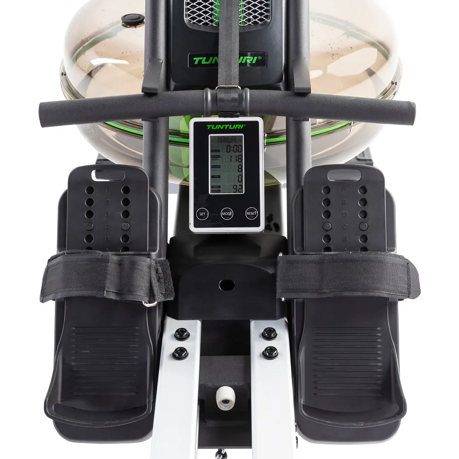 Veslovací trenažér TUNTURI R85W nabízí odpor vytvářený vodou v nádrži, která je umístěna v přední části vesla (čim více vody, tim větší odpor).