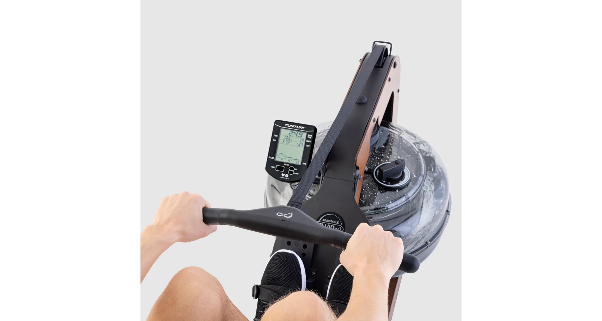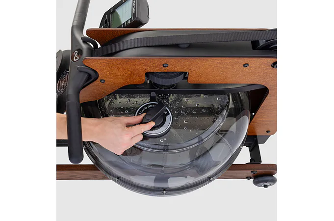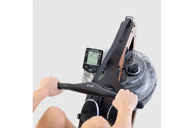 Exkluzívny veslovací trenažér TUNTURI Signature R90W je vyrobený z masívneho jaseňového dreva s prírodným dizajnom a použitím kvalitných komponentov. Rovnomerný odpor TUNTURI Signature R90W sa vytvára v nádrži s vodou s ergonomicky tvarovanou vodnou lopatkou, pomocou páčky v bubne na vodu si môžete nastaviť odpor záťaže až do 5 úrovní.