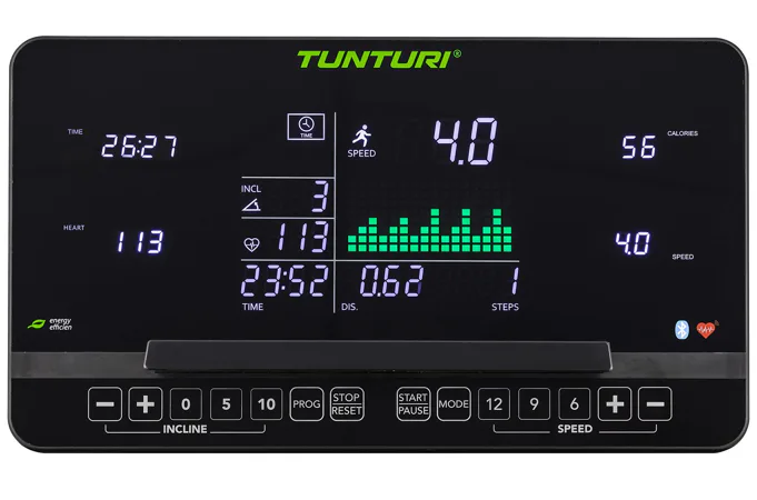 Tichý motor o výkonu až 5,0 HP (3,67 kW) umožňuje nastavení rychlostí v rozmezí 0,8 - 22 km/h. Běžecká plocha je prostorná a její rozměry jsou 50 x 140 cm, navíc je vybavena kvalitním odpružením T-Flex Comfort Plus. Sklon běžecké plochy lze elektronicky nastavit do 15 %.
