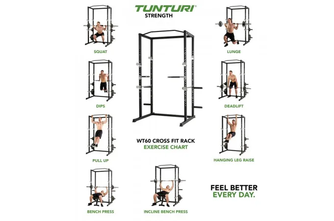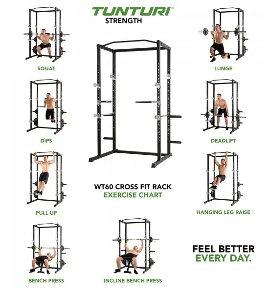 TUNTURI WT60 Cross Fit Rack je ideální posilovací klec určená do každého domácího, ale i lehce komerčního prostředí jako hotelová fitcentra či wellness.