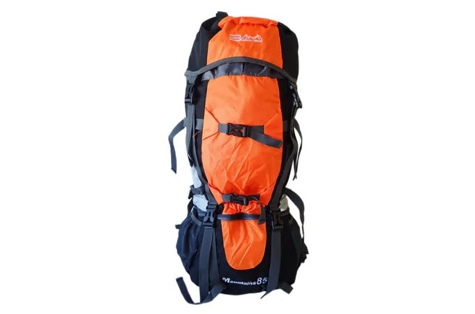 Turistický batoh ACRA BA85 pre horskú turistiku so spevneným chrbtovým systémom, pevnou konštrukciou a perfektnou ventiláciou. Bedrový pás s maximálnym obvodom 135 cm a hrudný pás, veľké množstvo upínacích pásikov na rôzne predmety (trekingové palice, topánky, cepín...).