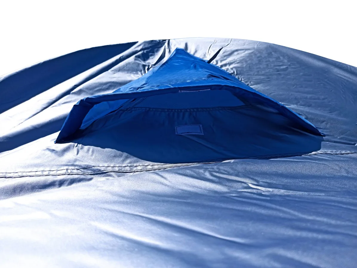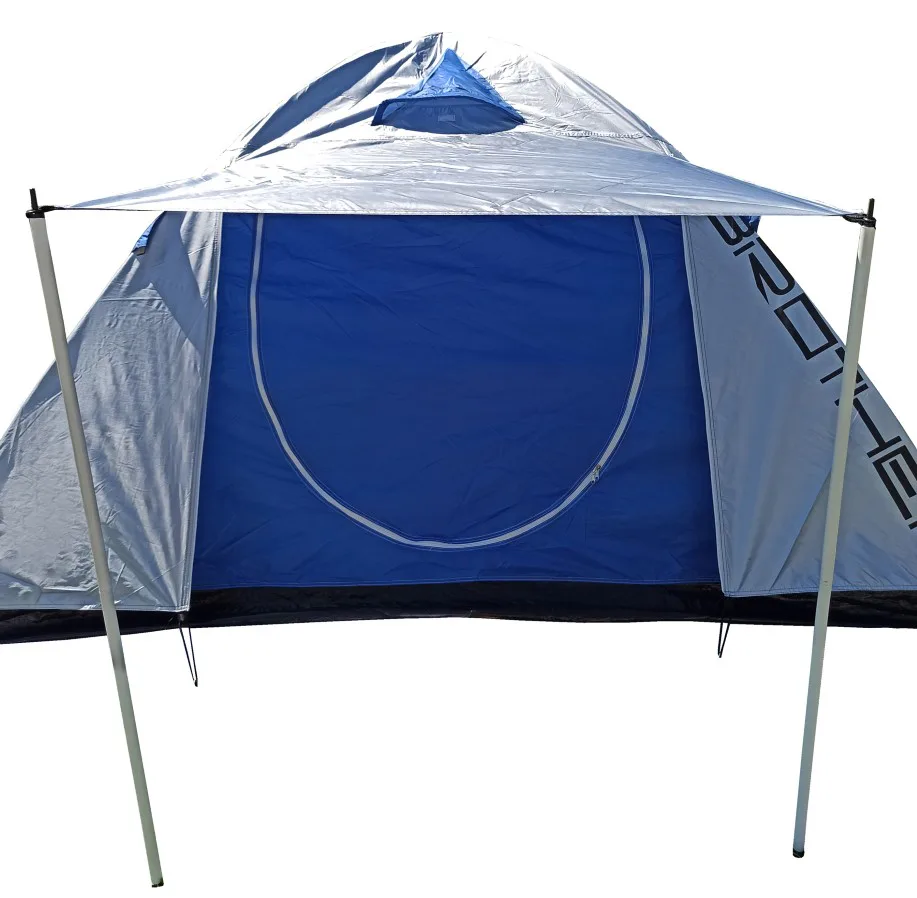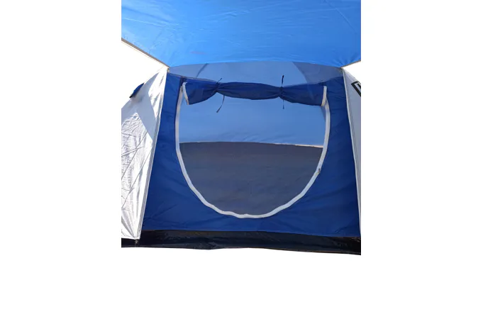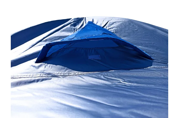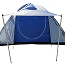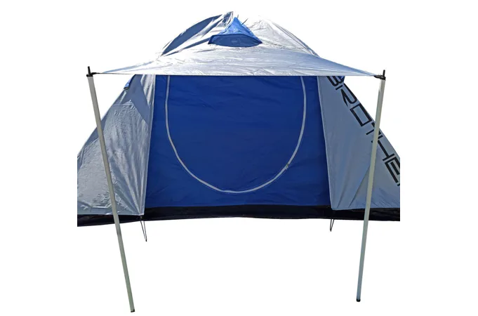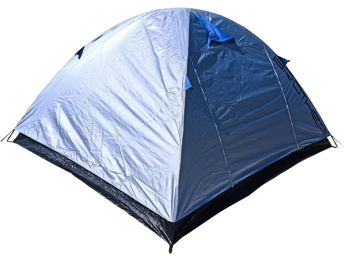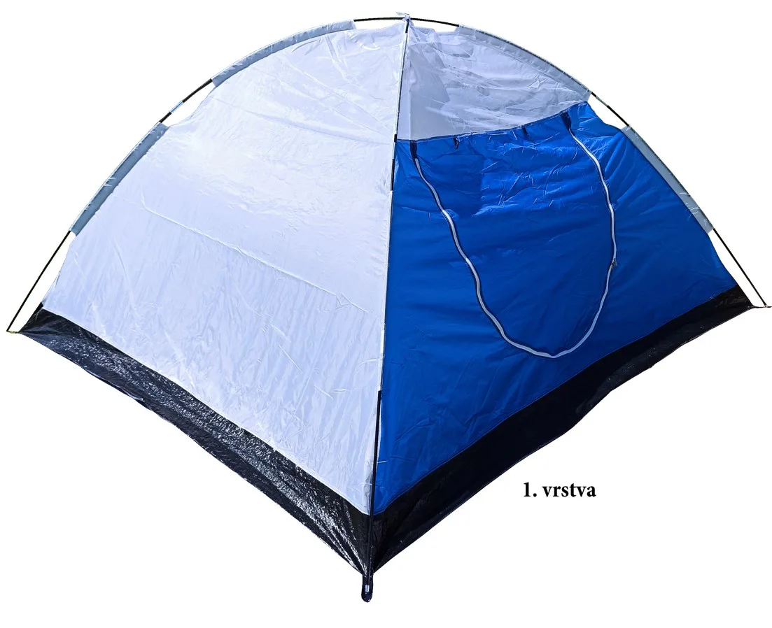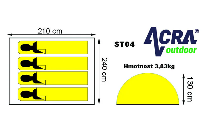 Turistický stan ACRA ST04 pre 4 osoby - kopula dvojplášťová (oddelená spálňa od vrchného plášťa), strieborný poťah na vrchnom plášti znižuje vnútornú teplotu vo vnútri stanu za slnečných dní o 6 - 10 stupňov. Podlepené švy zabraňujú prieniku vody dovnútra stanu pri daždi.