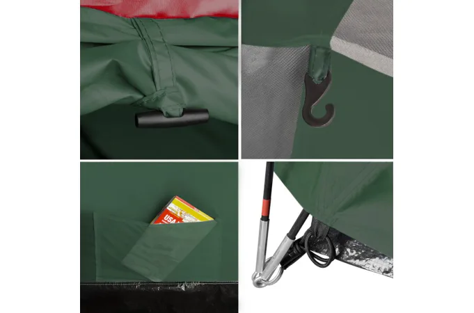 Rocker je možné rýchlo postaviť pomocou troch skladacích, sklolaminátových tyčí. Stan je dodávaný v praktickej taške, kde okrem tropika, vnútorného stanu a tyčí nájdete aj napínacie šnúry a kolíky.