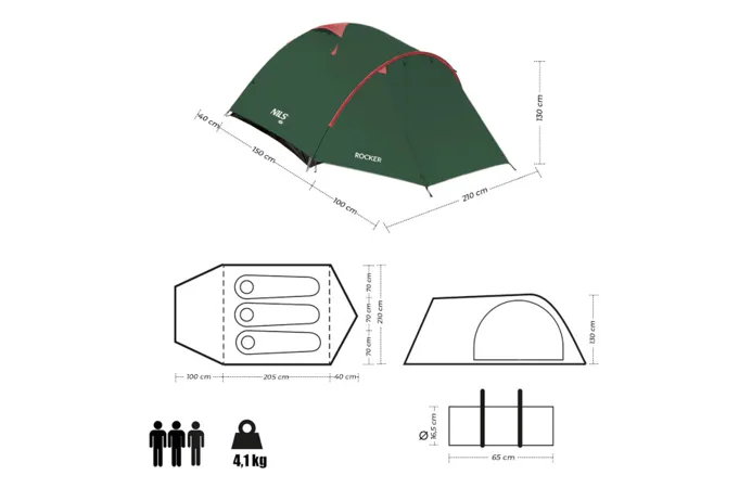 NILS Camp NC6013 Rocker je 3 osobový stan, ktorý oceníte počas teplých letných nocí na záhrade alebo pri pobyte v kempe. Stan Rocker je dvojplášťový a skladá sa z priestrannej predsiene a jednej spálne.
