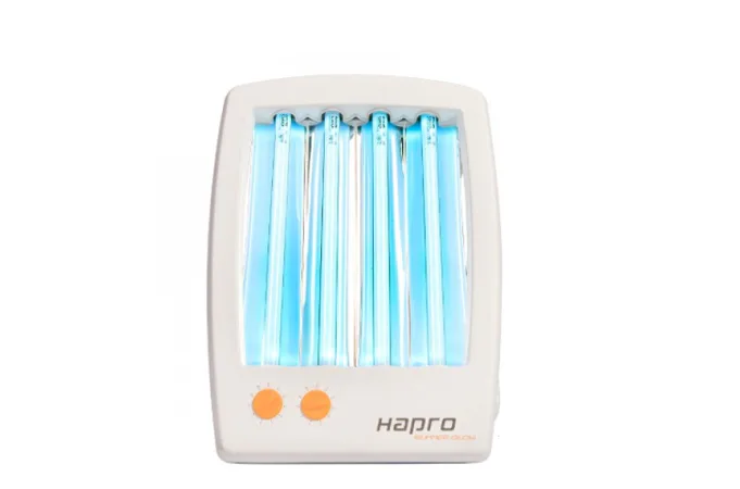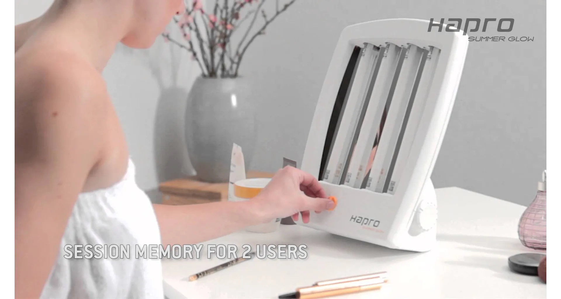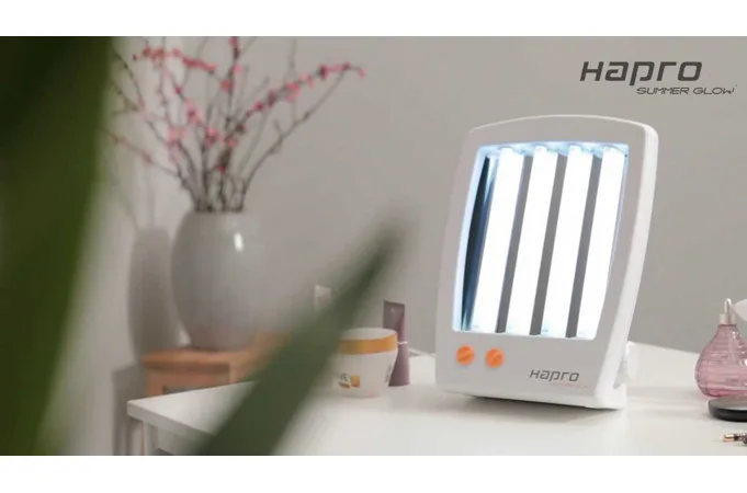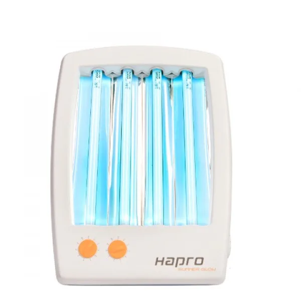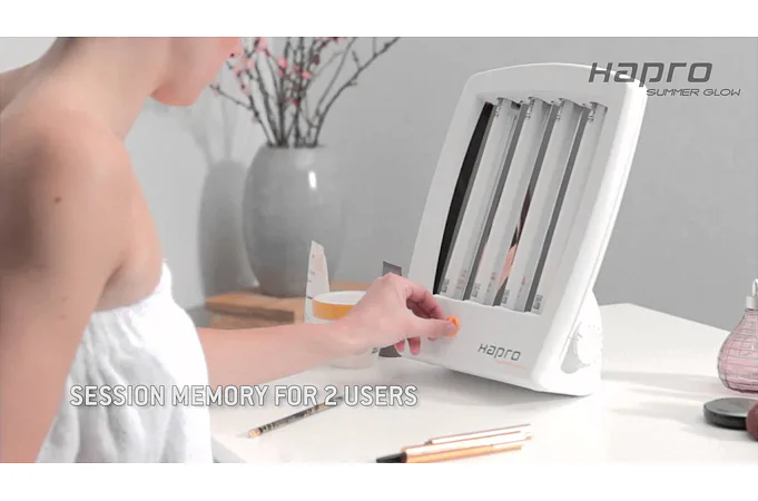 Tvárové solárium Hapro Summerglow HB 175 je osadené reflektorom optimalizujúcim výkon štyroch 15 W špagetok pre čo najlepší opaľovací účinok. Mechanický časovač vám uľahčí kontrolovať vhodnú dobu na dosiahnutie vysnívanej farby pleti. Solárium ďalej ponúka možnosť zvoliť si z dvoch opaľovacích úrovní a užívateľskú pamäť, ktorá sleduje počet opaľovaní až pre dve osoby. Vzhľadom na jeho veľkosť si ho ľahko pribalíte na cesty.