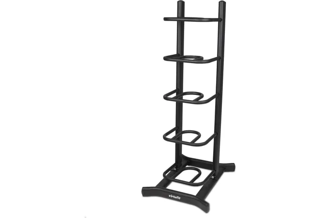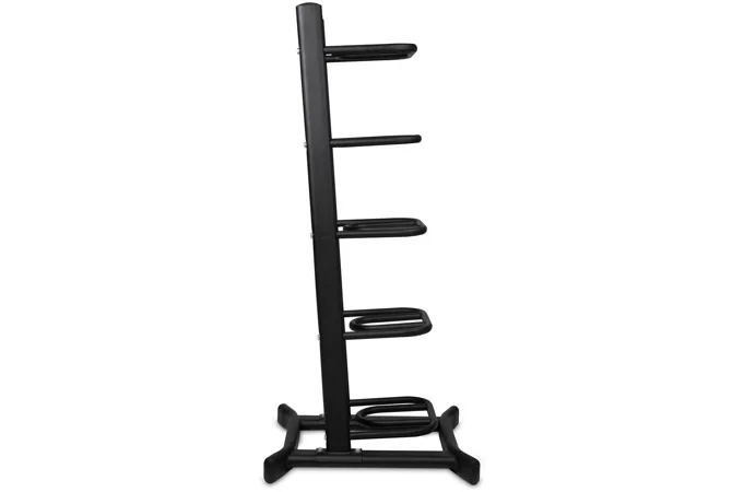 Stojan disponuje päťstupňovým úložným systémom, ktorý umožňuje efektívnu organizáciu vybavenia. Vertikálne prevedenie minimalizuje nároky na priestor, čo oceníte najmä v menších tréningových priestoroch. Stojan je vyrobený z kvalitnej ocele, ktorá je ošetrená kvalitnou povrchovou úpravou vypaľovaným lakom. Ten zaisťuje dlhú životnosť a ochranu proti opotrebovaniu. Maximálna nosnosť 150 kg zaisťuje stabilitu aj pri intenzívnom používaní. Je možné ho umiestniť k stene alebo voľne do priestoru, čo umožňuje flexibilné usporiadanie vybavenia podľa vašich potrieb.