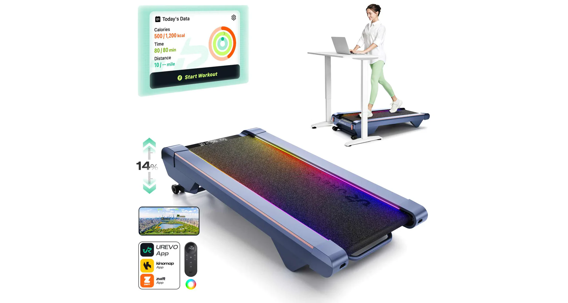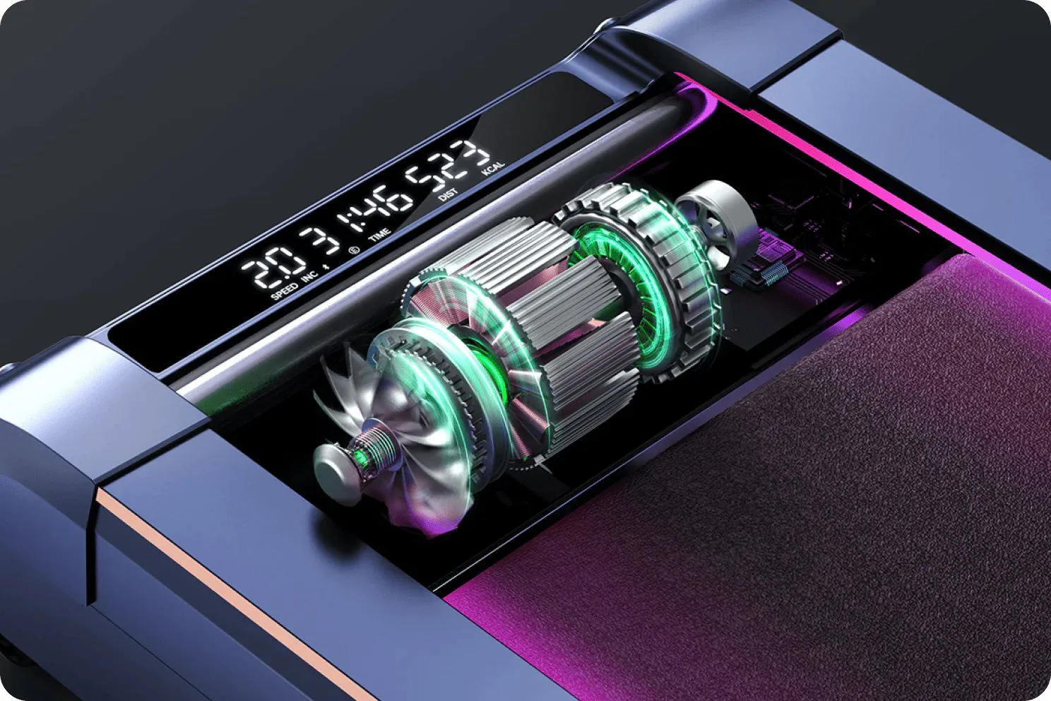 Bežecký pás UREVO CyberPad ponúka atraktívnu funkciu podsvietenia, ktorá spríjemní a oživí vaše cvičenie. Vďaka integrovanému RGB LED osvetleniu si môžete vybrať z 256 farebných odtieňov a troch svetelných režimov: