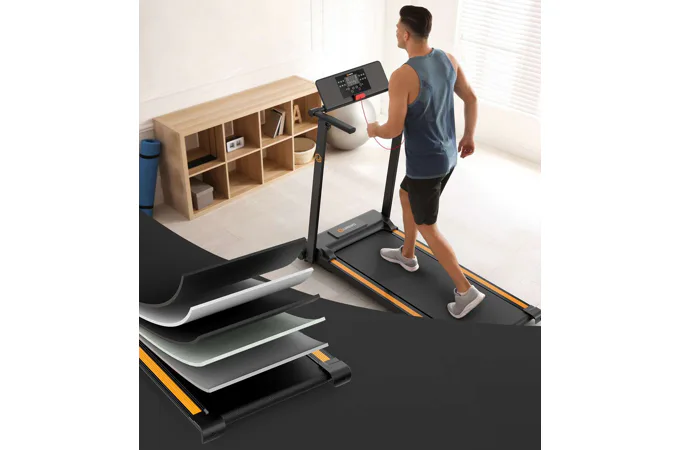 UREVO Foldi Mini ponúka bežeckú plochu s rozmermi 106 × 41 cm, ktorá poskytne dostatok priestoru na chôdzu i beh. Systém odpruženia pomáha tlmiť nárazy pri došliapnutí. Trenažér disponuje motorom s maximálnym výkonom 2,25 HP, ktorý umožňuje nastaviť rýchlosť od 1 do 10 km/h. To zodpovedá plnohodnotnému využitiu – na chôdzu alebo mierny klus.