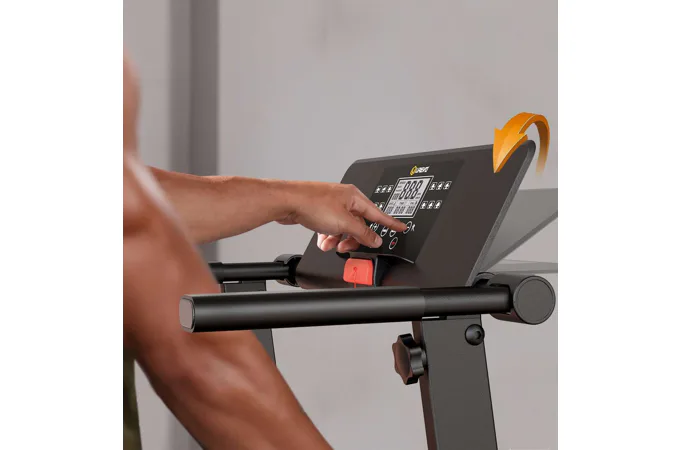 Jednoduchý LED displej prehľadne zobrazuje základné tréningové údaje – čas, rýchlosť, vzdialenosť a spálené kalórie. Ovládanie prebieha prostredníctvom konzoly s tlačidlami. Pre užívateľov, ktorí preferujú maximálne jednoduché ovládanie bez zložitého nastavovania, je tento pás úplne vhodný.